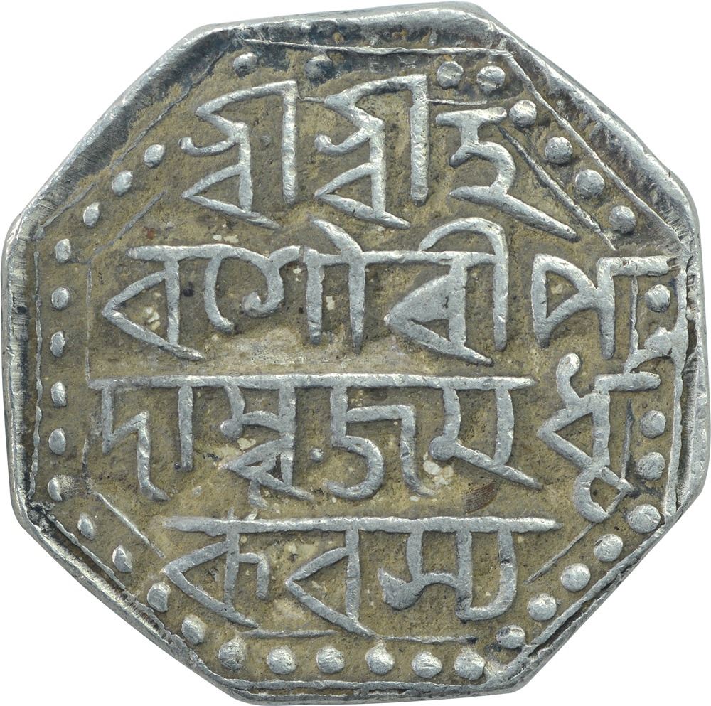 Assam, Rudra Simha, Silver Rupee, SE 1622, Obv:assamese legend sri sri ha / ra gauri pa / damabuja madhu / karasya, Rev:assameselegend sri srimat / svarga deva rudra / simhasya sa / ke1622, lion below running right, 11.33g, 23.64mm,(S.K.Bose # F 10.1), about extremely fine,Scarce.
