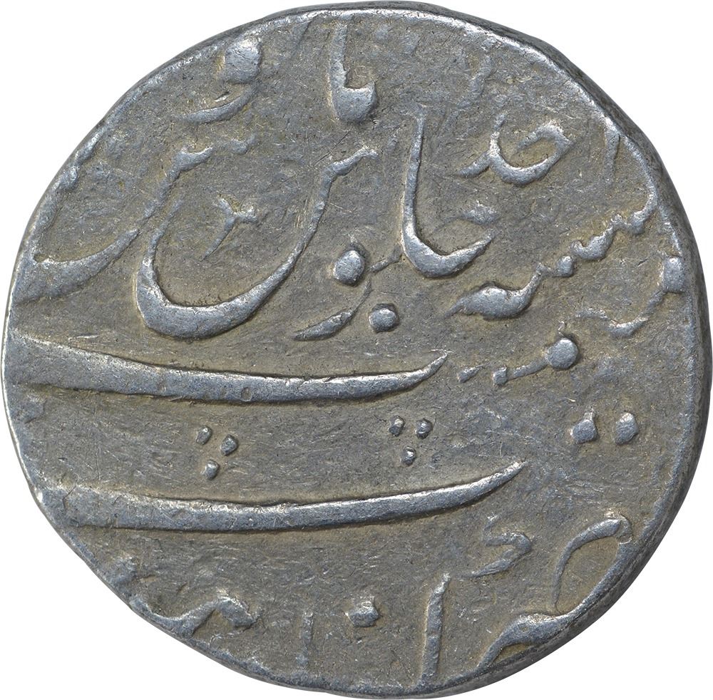Shah Alam Bahadur, KanbayatMint, Silver Rupee,Ahad RY,Obv:sikka mubarak badshah ghazi,Rev:sana julus zarb at bottom,11.53g, 24.28mm,about very fine.