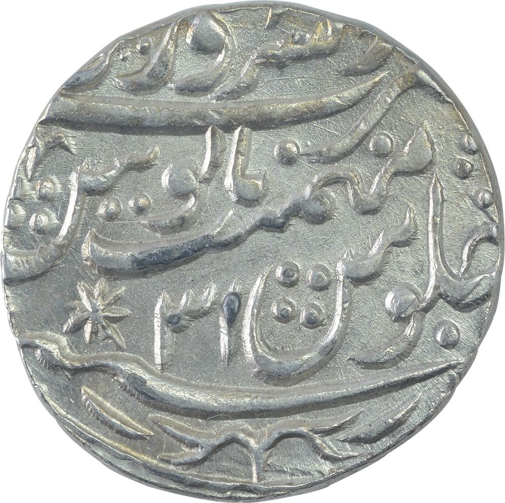 Shah Alam II,Saharanpur Dar-us-Surur Mint, Silver Rupee, AH 1204/31 RY, Obv: saya-e-fazle elahcouplet, Rev: sana julus zarb, left of the RY star mark, 11.20g, 21.68mm, (KM # 675), about very fine.