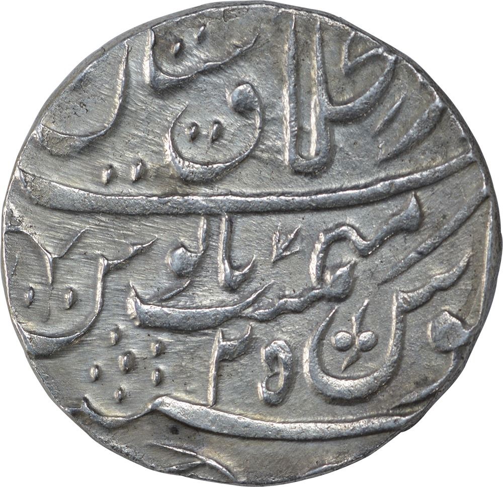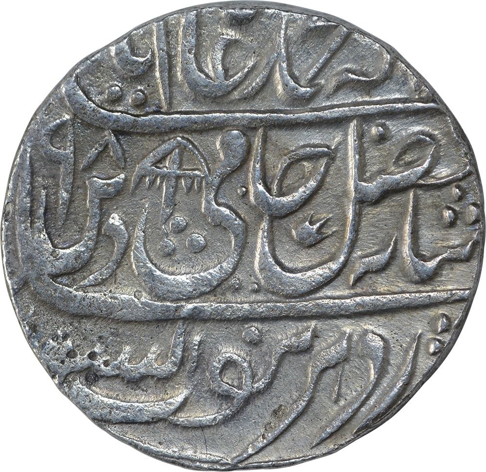 Shah Alam II, ShahjahanabadDar ul Khilafat Mint,Silver Rupee, AH 1198/25 RY,Obv: saya-e-fazle-elah couplet,Rev:sana julus zarb, 11.40g, 22.31mm,(KM # 709.2),choice extremely fine, Rare.