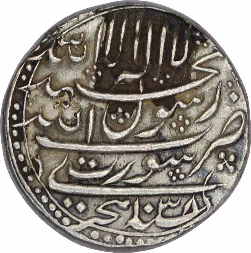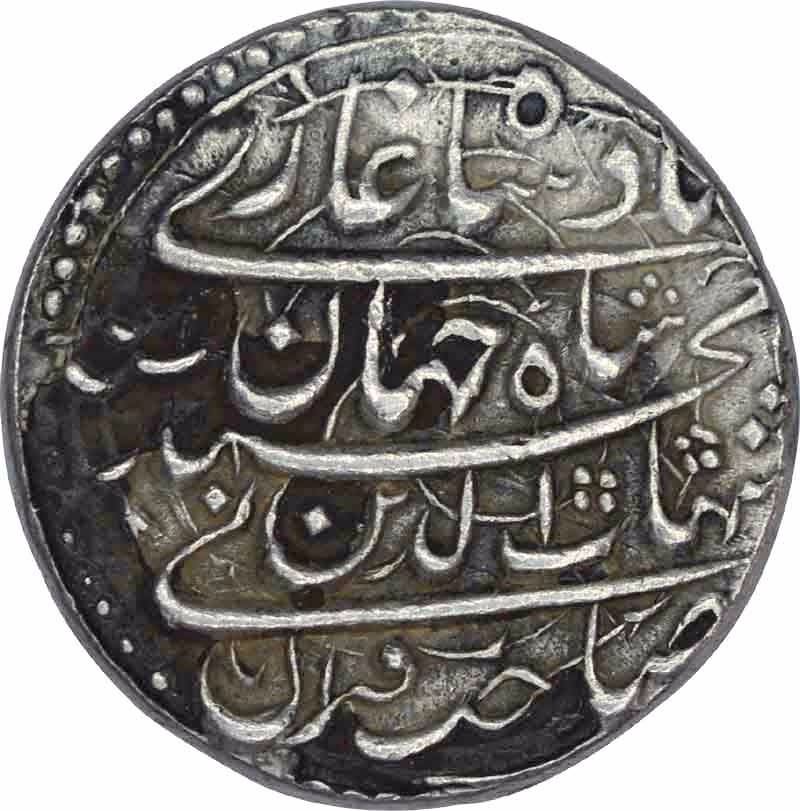 Shah Jahan, Surat, Silver Rupee, 1038 AH/Ahad RY,Obv:kalima shahada, at bottom zarb ah date,Rev:"saheb-e-qiran sani" shihabuddin muhammad shahjahan badshah ghazi,11.50g, 23.76mm,(KM # 222.13),aboutextremely fine.
