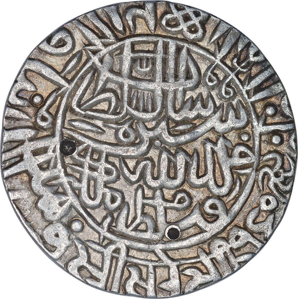 Delhi Sultanate, Sher Shah Suri, Silver Rupee, AH 950, Obv:kalima shahada, sultan ul adil around,Rev:sher shah al-sultan khallada allah mulkahu sanah date and nagari in margin,11.50g, 32.64mm, (GG # D826), about extremely fine, Scarce.