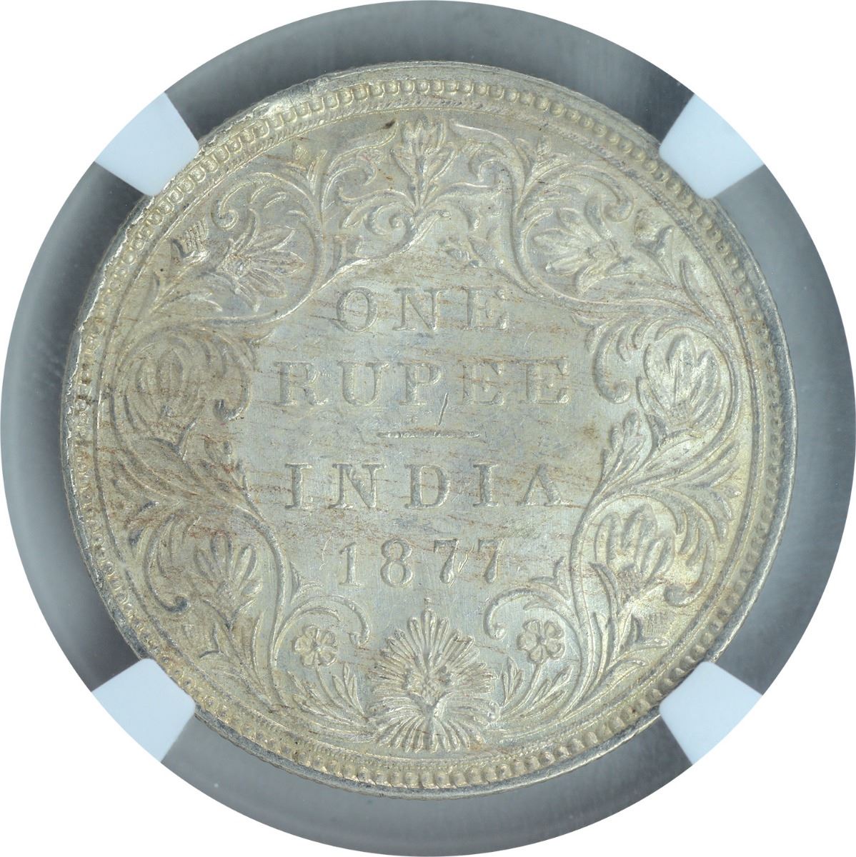 1877, Victoria Empress, Silver Rupee, Bombay Mint, A2/II/ Dot, (PR # 149), graded slabbed by NGC as MS 61.