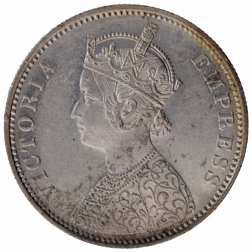 Silver One Rupee Coin of Victoria Empress of Bombay Mint of 1878.