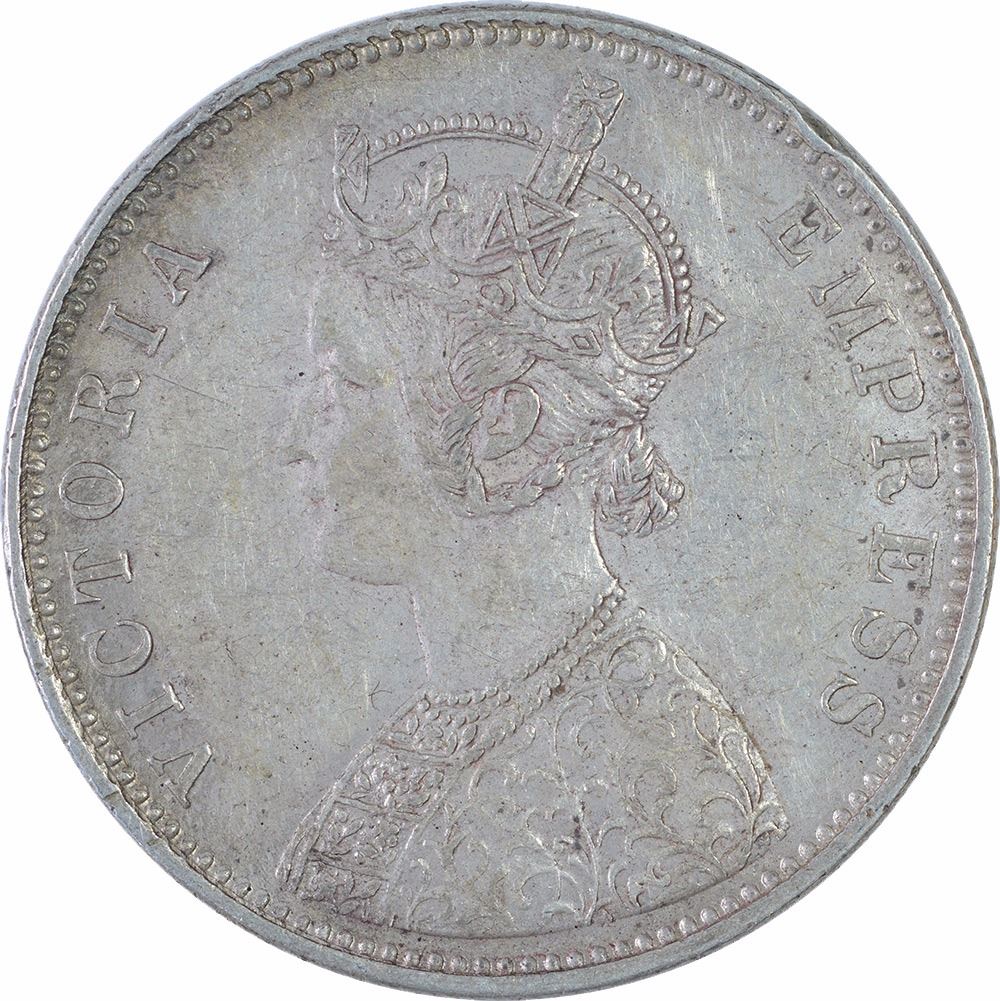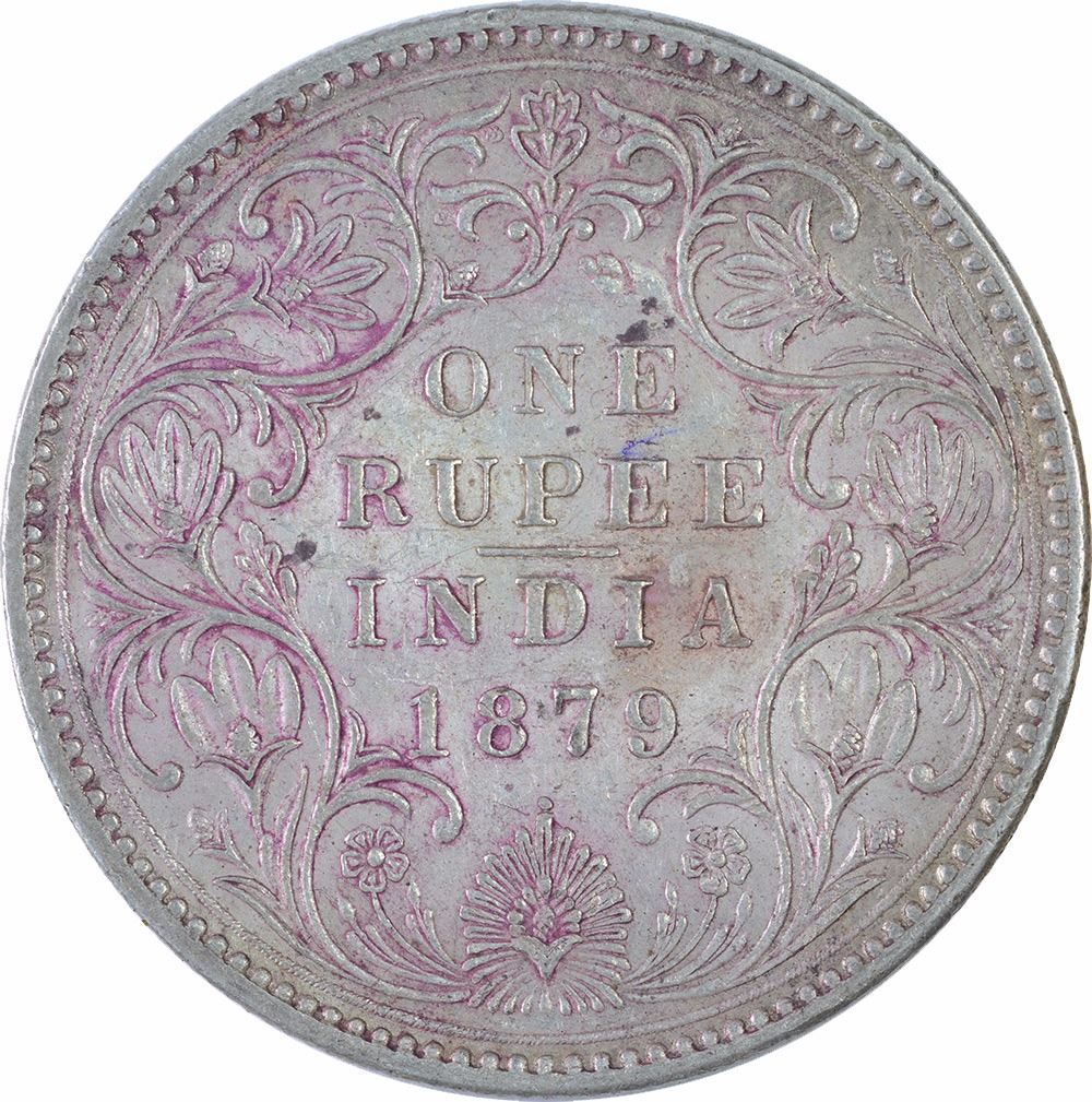 Silver One Rupee Coin of Victoria Empress of Bombay Mint of 1879.