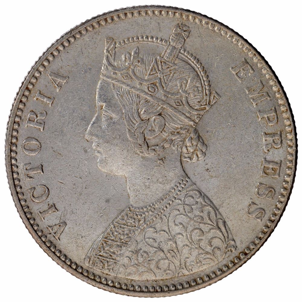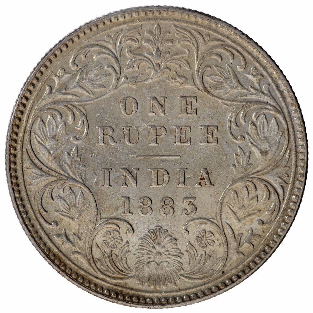 Silver One Rupee Coin of Victoria Empress of Bombay Mint of 1883.