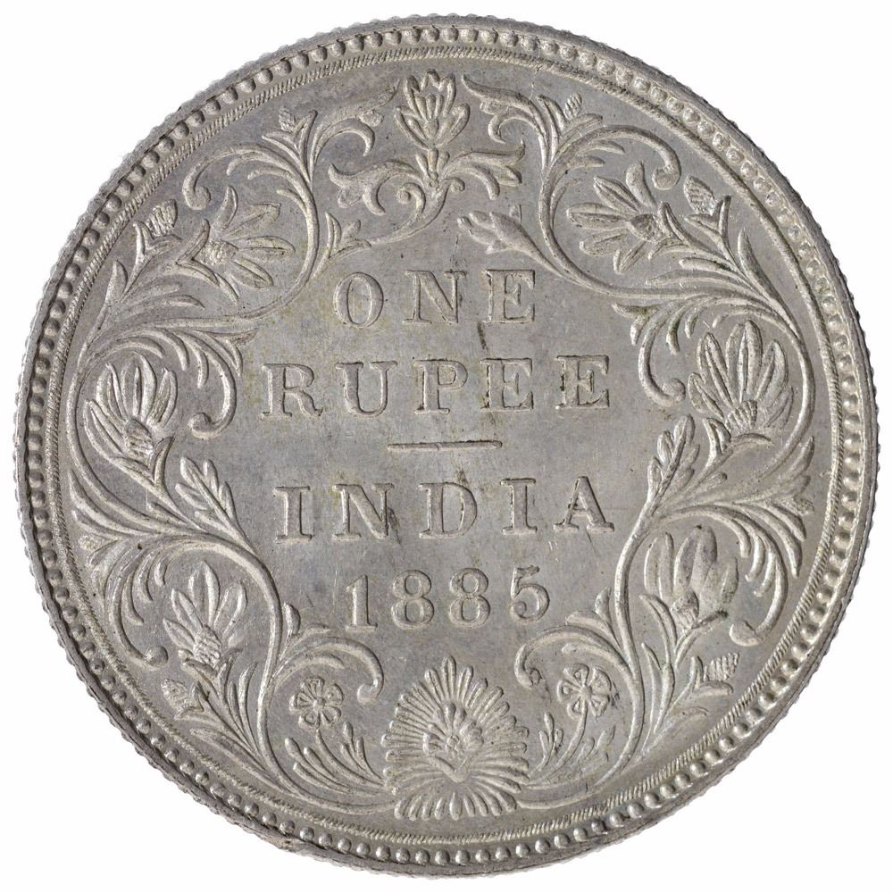Silver One Rupee Coin of Victoria Empress of Bombay Mint of 1885