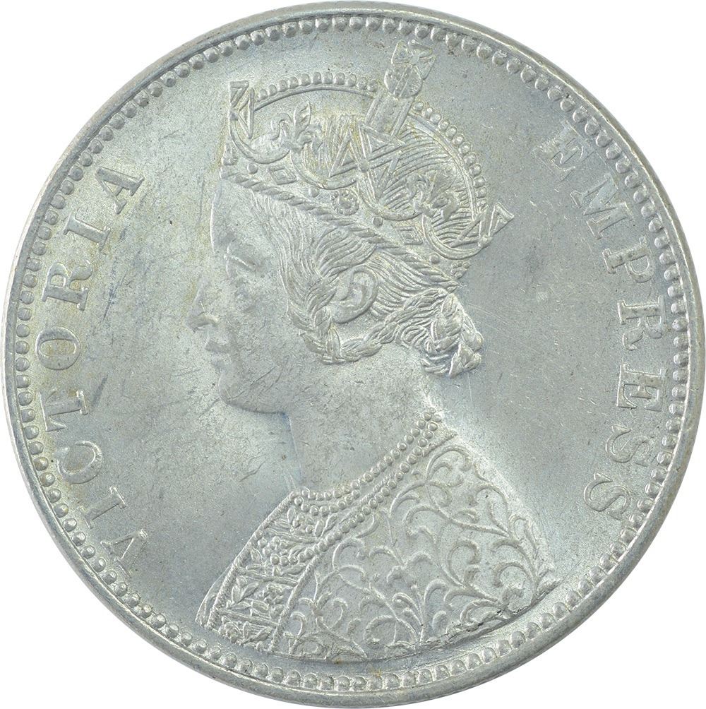 Silver One Rupee Coin of Victoria Empress of Bombay Mint of 1887.