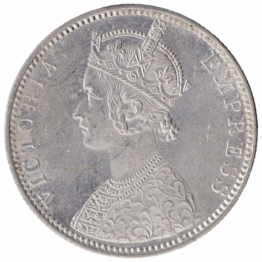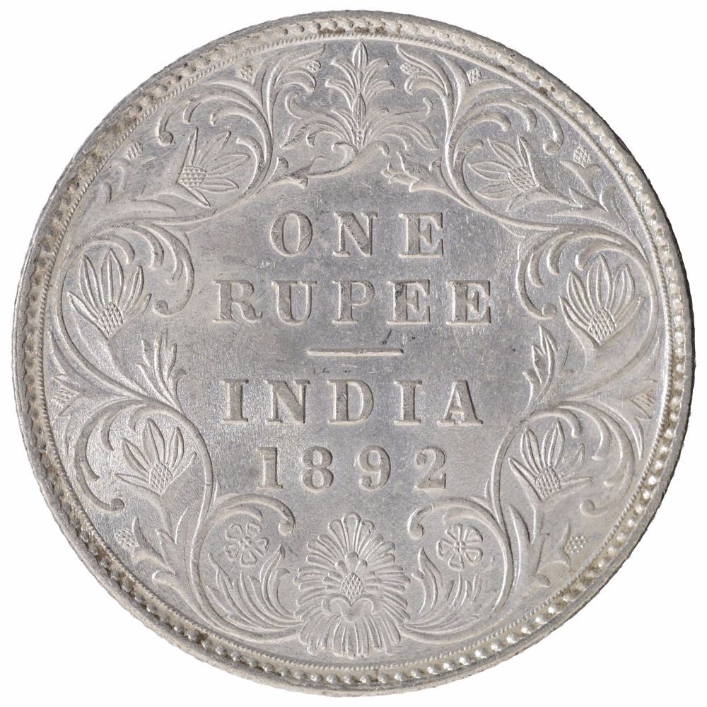 Silver One Rupee Coin of Victoria Empress of Bombay Mint of 1892.