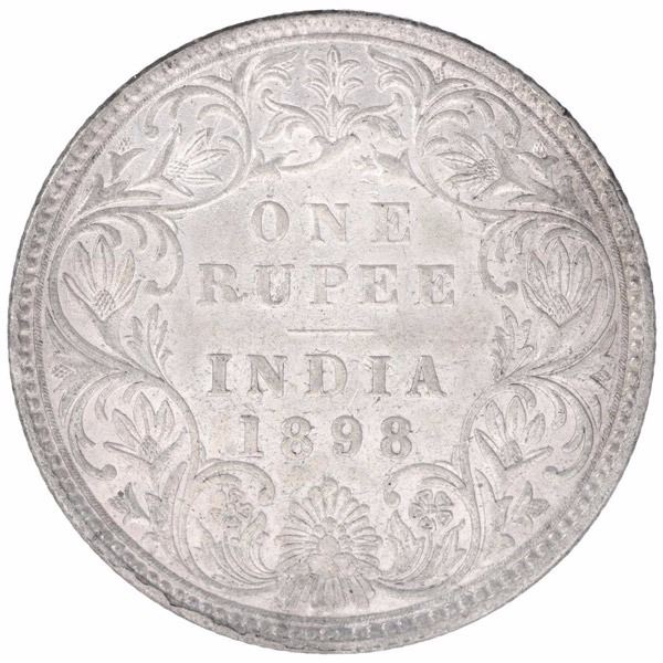 Silver One Rupee Coin of Victoria Empress of Bombay Mint of 1898.