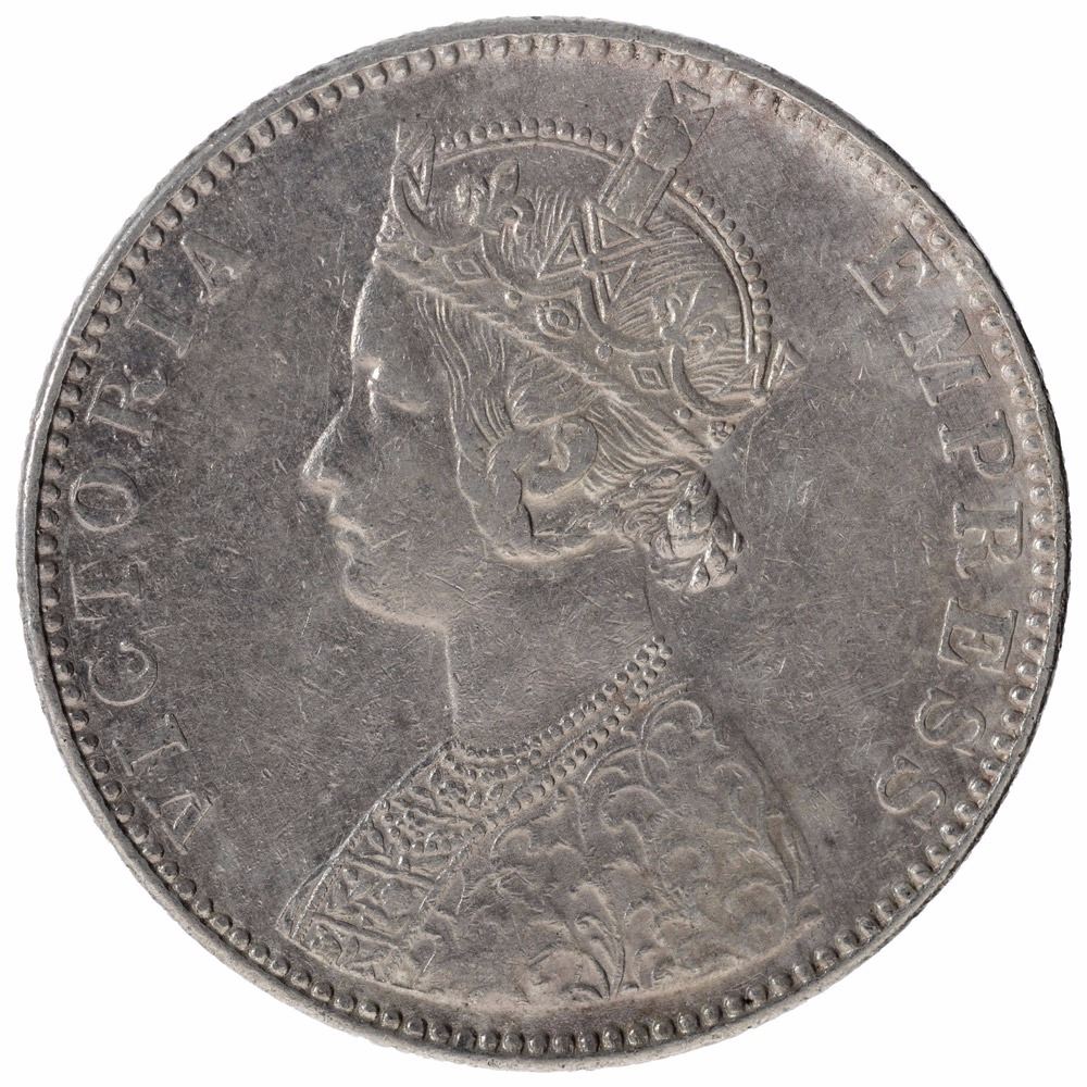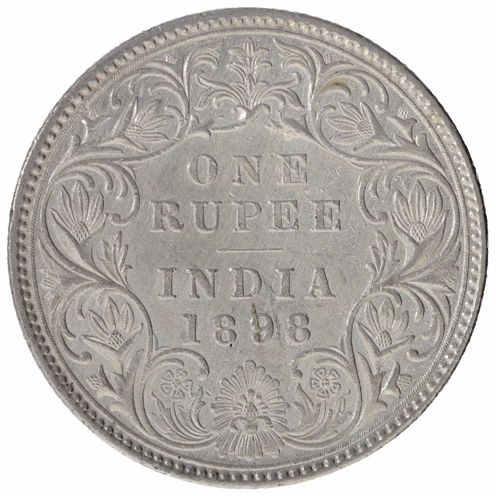 1898,Victoria Empress,Silver Rupee,Bombay Mint,C2/I/B incuse, 8 over 7 in 98, (PR # 184),about extremely fine,Rare.