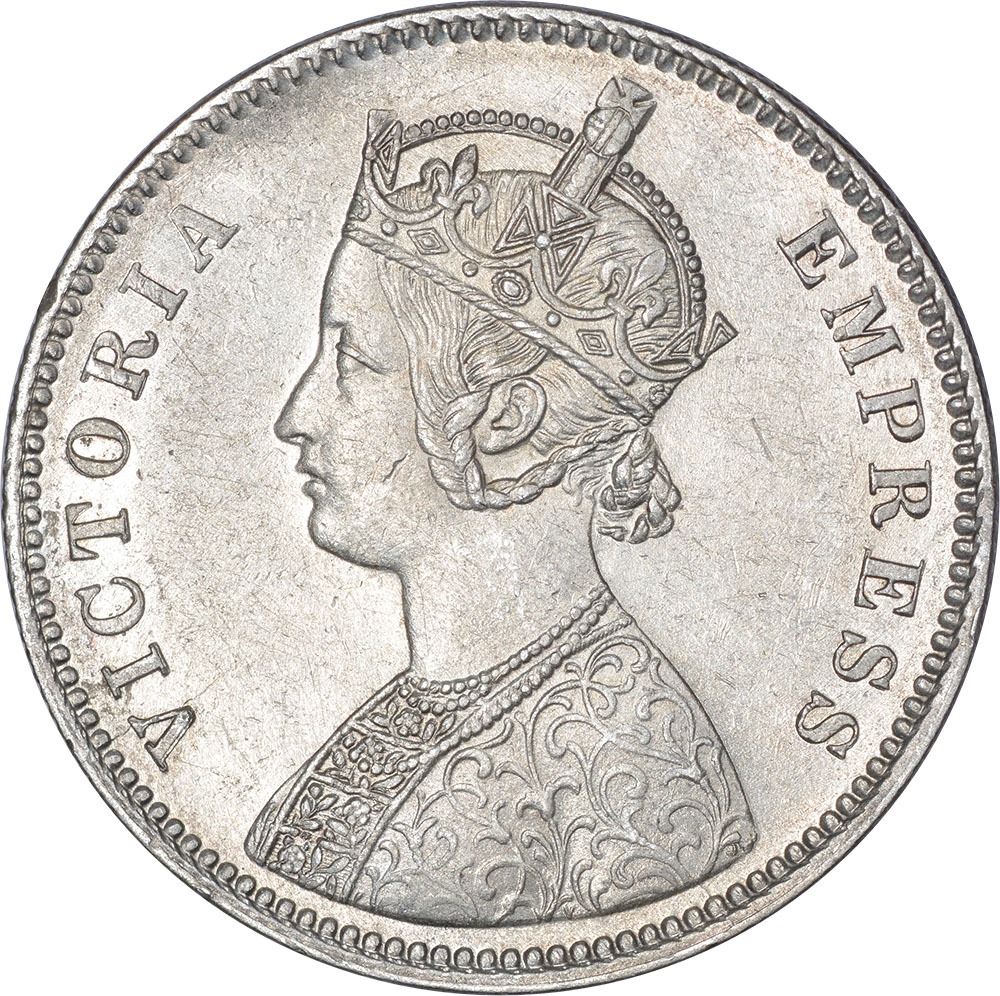 1877, Victoria Empress, Silver Rupee, Calcutta Mint, A1/I, (PR # 115),aboutUNC.