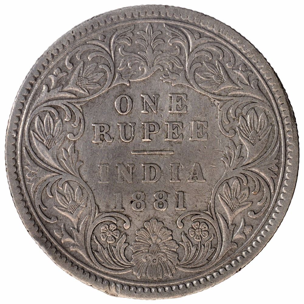 Silver One Rupee Coin of Victoria Empress of Calcutta Mint of 1881.