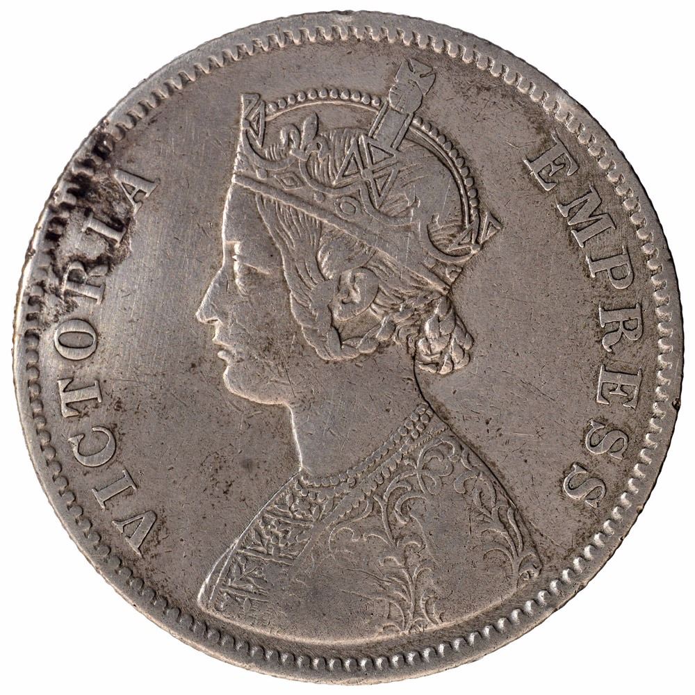 1881, Victoria Empress, Silver Rupee, Calcutta Mint, A1/1/C incuse, (PR # 119/GK # 471), about extremely fine,Rare.