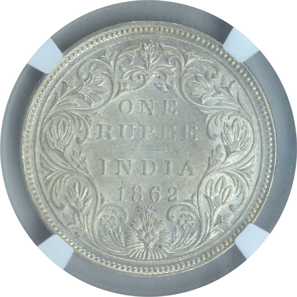 1862, Victoria Queen, Silver Rupee, Bombay Mint, H/2/0/6 Dots, (SW - 4.81), (PR # 86), graded slabbed by NGC as MS 61, Rare.