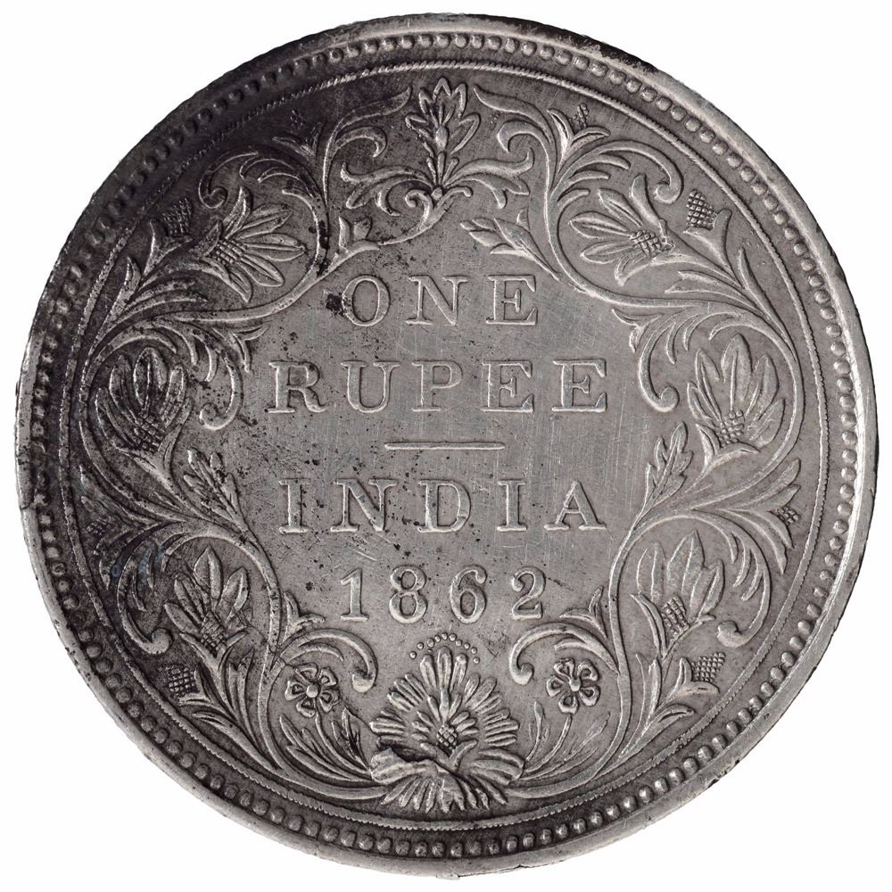 Silver One Rupee Coin of Victoria Queen of Bombay Mint of 1862.