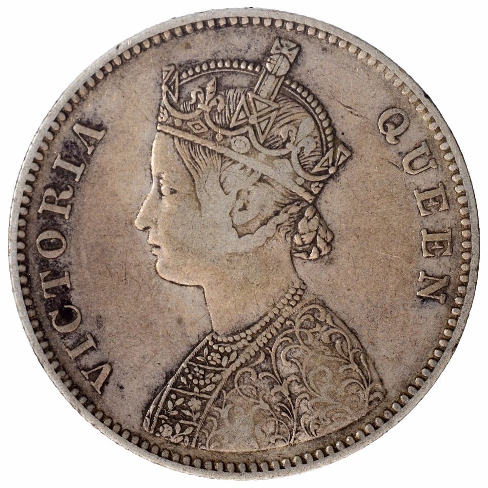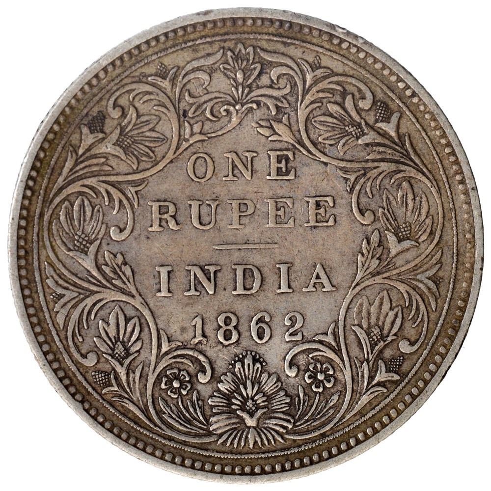 1862,Victoria Queen,Silver Rupee,Bombay Mint,A/II/0/14 Dots(10+1 micro dot+3 dots on tips of flower),Unlisted in GK PR,choice extremely fine,Rare.