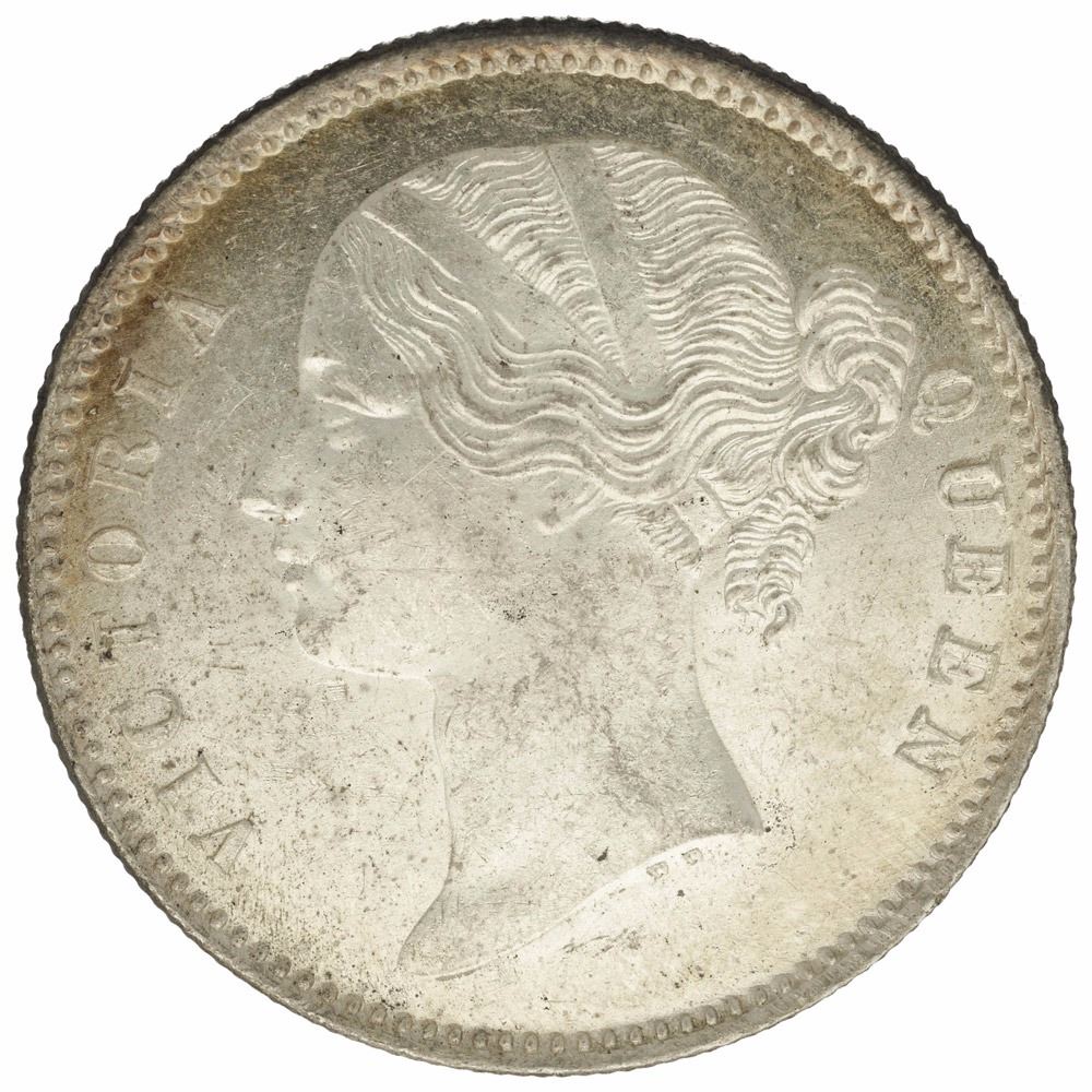 1840, Victoria Queen, Silver Rupee, Calcutta Mint,W.W. Raised, 28 berries (13L +15R),Frosted Head Mirror Like field, (PR # 56), Gem UNC.