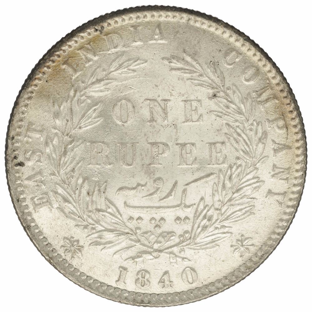 Silver One Rupee Coin of Victoria Queen of Calcutta Mint of 1840.