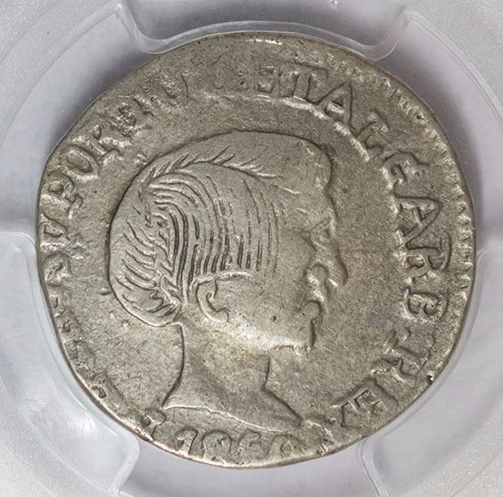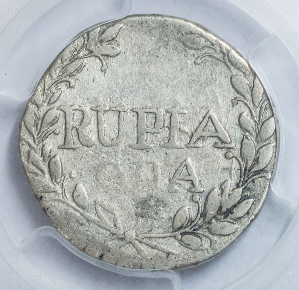 India-Portuguese, Goa, Pedro V, 1860 AD,SilverRupia,Obv:head right,Rev:value within sprays,(KM# 279), slabbed by graded by PCGS as VF25, Rare.