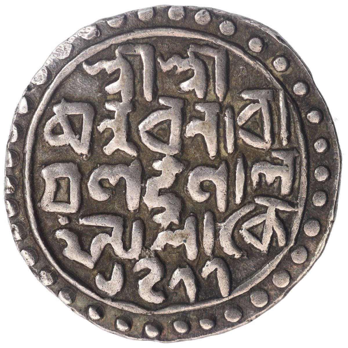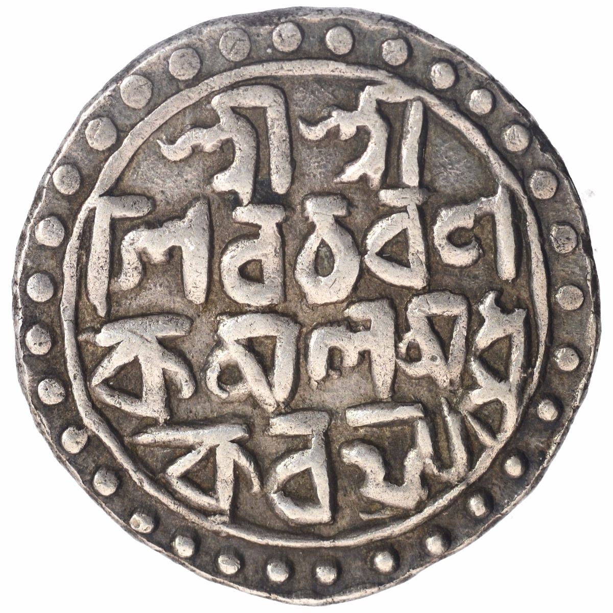 Cooch Behar, Nara Narayan, Silver Tanka (Rupee), SE 1477, Obv: bengali legend sri sri / siva charana kamala madhu / karasya, Rev: bengali legend sri sri / man naranara / yana bhupala / sya sake / 1477, 10.48g, 24.75mm, (S.K.Bose # A-1.11),about extremely fine.