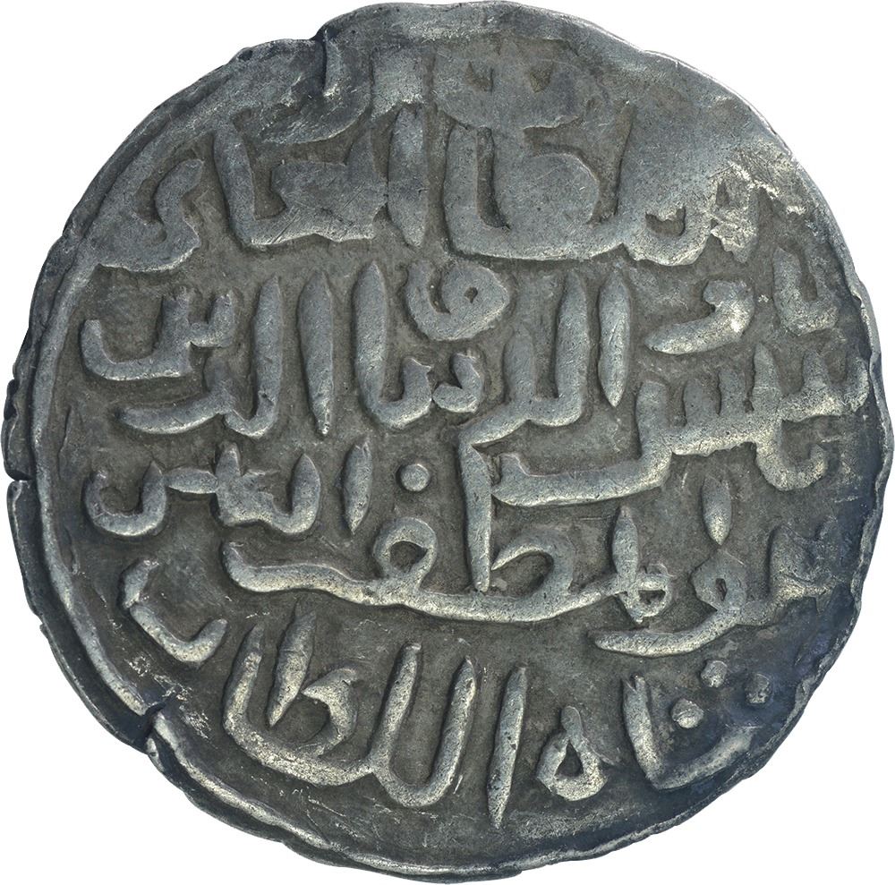 Bengal Sultanate, Shams Ud-Din Ilyas Shah (AH 746-758/1345-1357AD), Hadrat Firuzabad Mint, Silver Tanka, Obv: al-sultan al-adil shams al-dunya wal din abul muzaffar ilyas shah al-sultan, Rev: sikandar al-thani yamin al-khilafa (nasir) amir al-muminin, 10.53g, 31.30mm, (GG # B153), about extremely fine, Scarce.