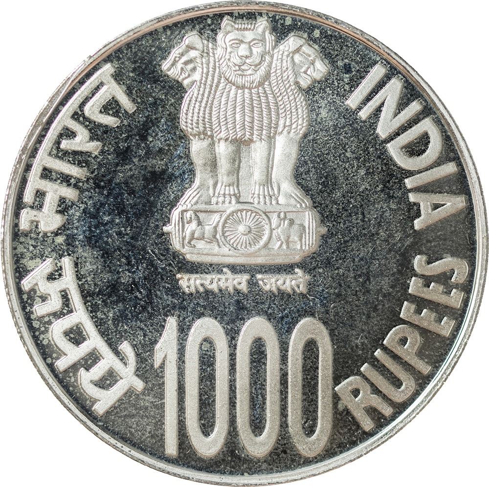 Silver One Thousand Rupees Proof Coin of Thousand Years of Brihadeshwara Temple of Mumbai Mint of th