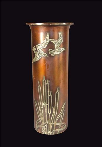 Silver Overlay Bronze Vase, patent applied 3615E. Excellent condition. 12 inches tall.