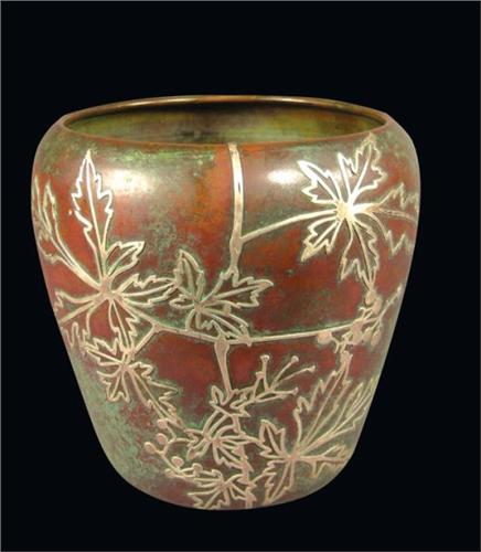 Silver Overlay Bronze Vase marked 3571-A. 5 3/4 inches tall.