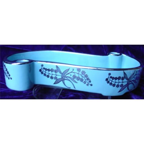 This 1950's Haeger planter has it all. It is a low planter which also has room for two candles. There is a heavy sterling silver overlay in the form of lily of the valley flowers on all sides. This planter measures approximately 11 1/4" in length. It is in excellent vintage condition.