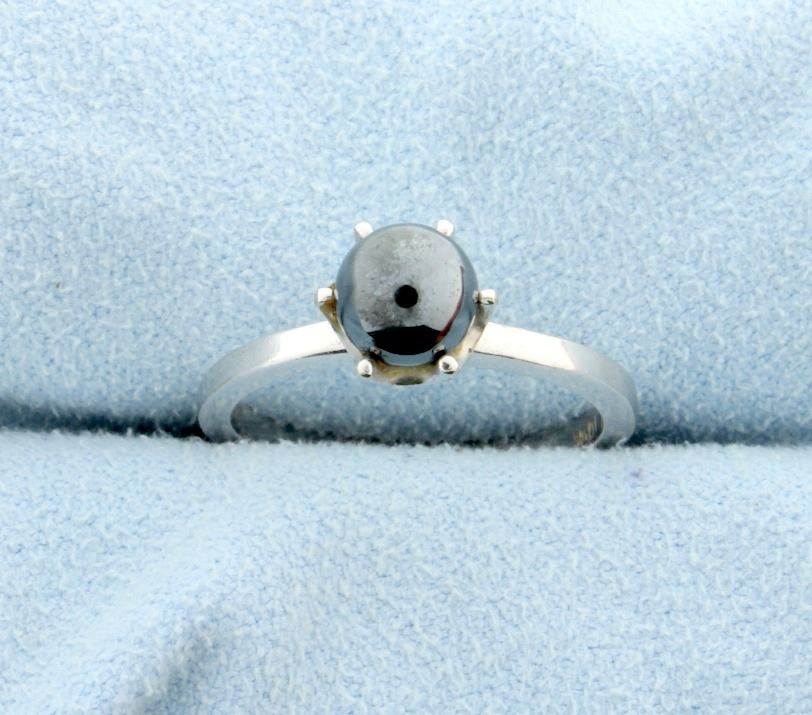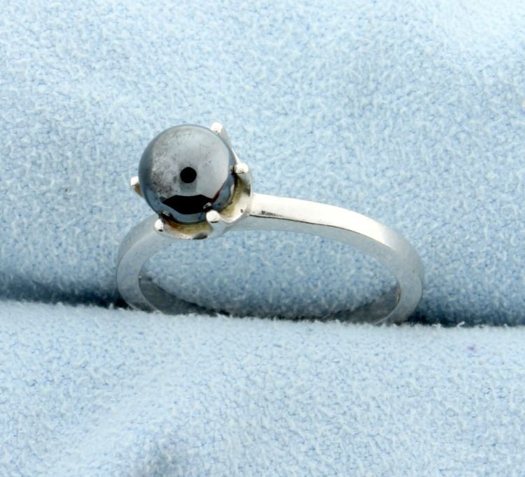 This ring is 10K white gold and contains a 6mm pearl that has excellent color. Size 6 1/2 3.0g