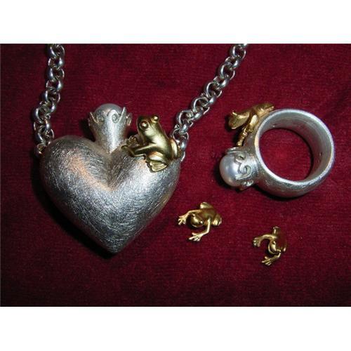 <tr><td>Title: Silver Pendant, Ring and Earrings with Frogs</td></tr>