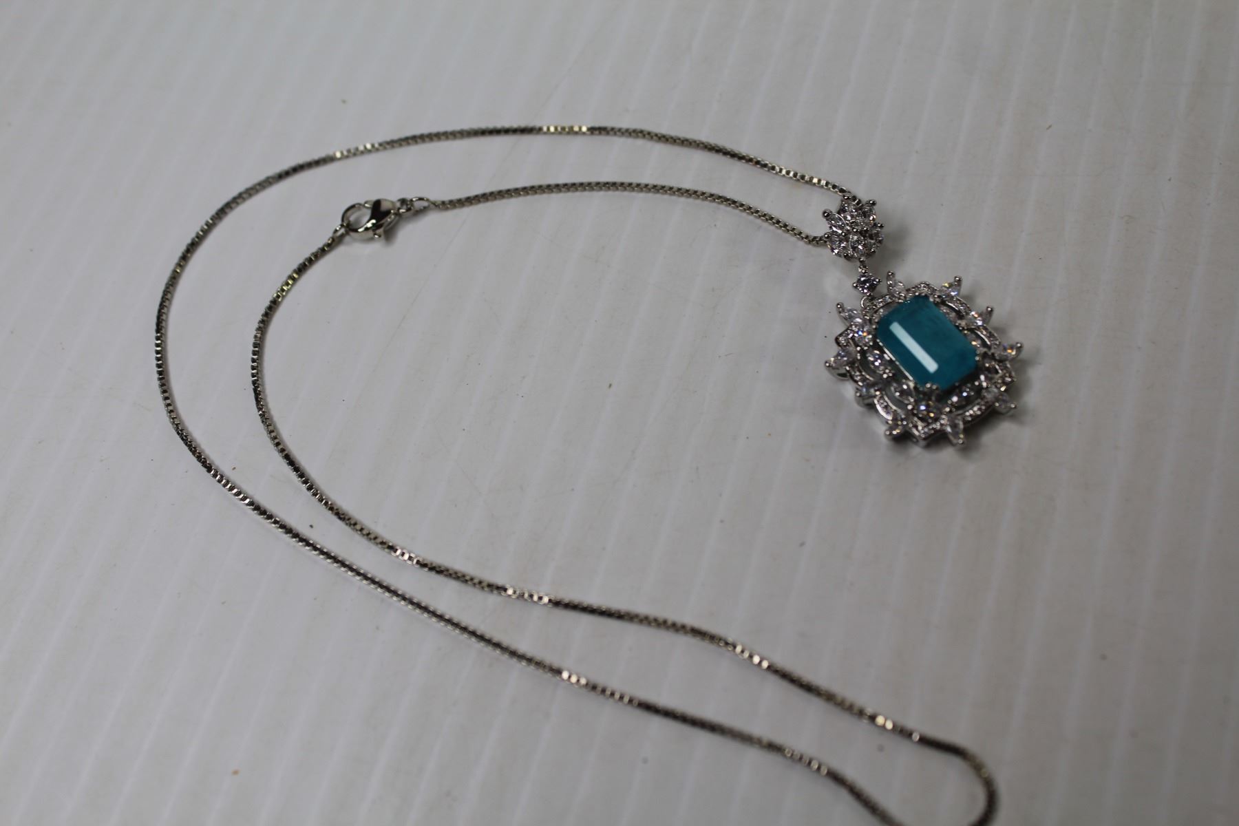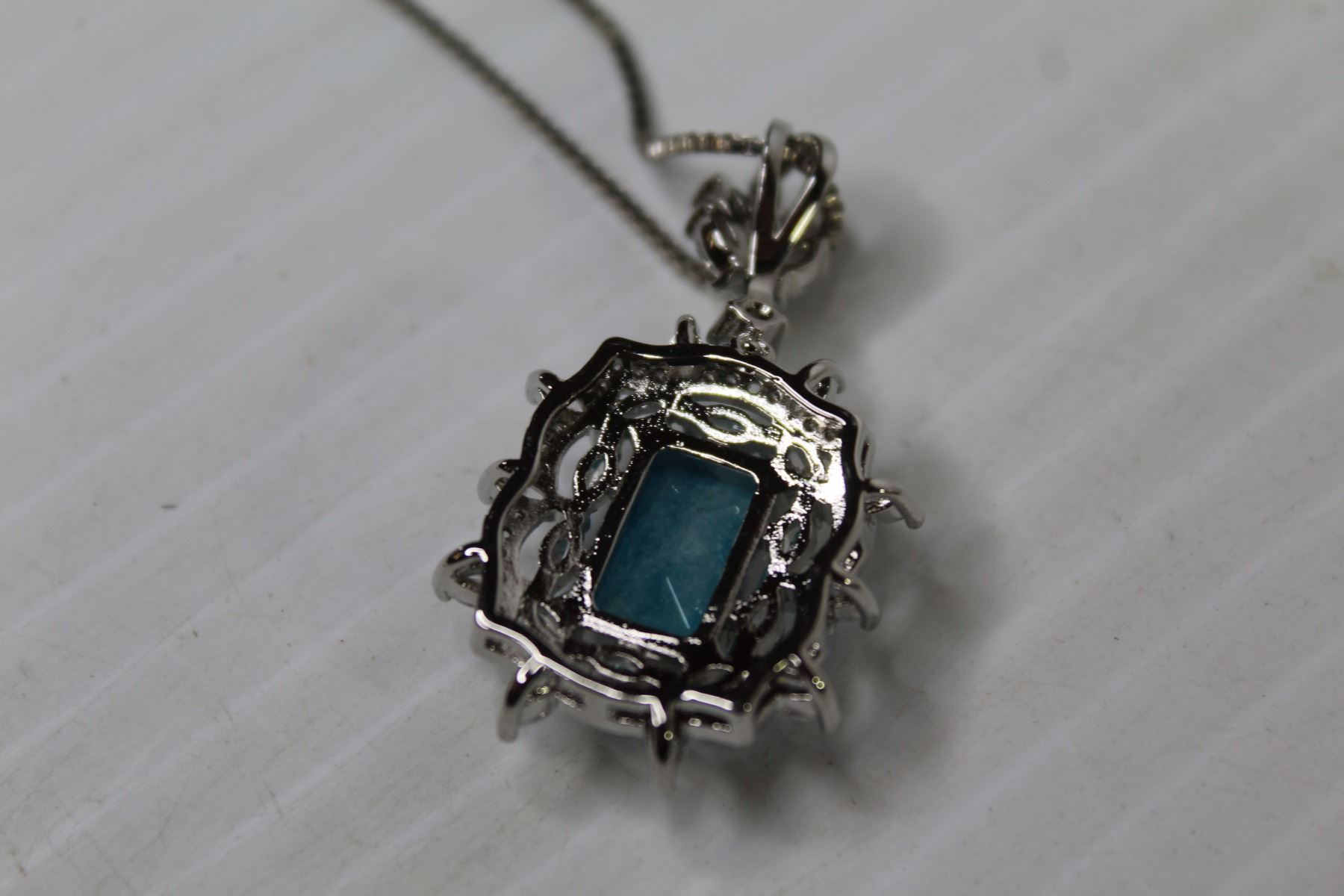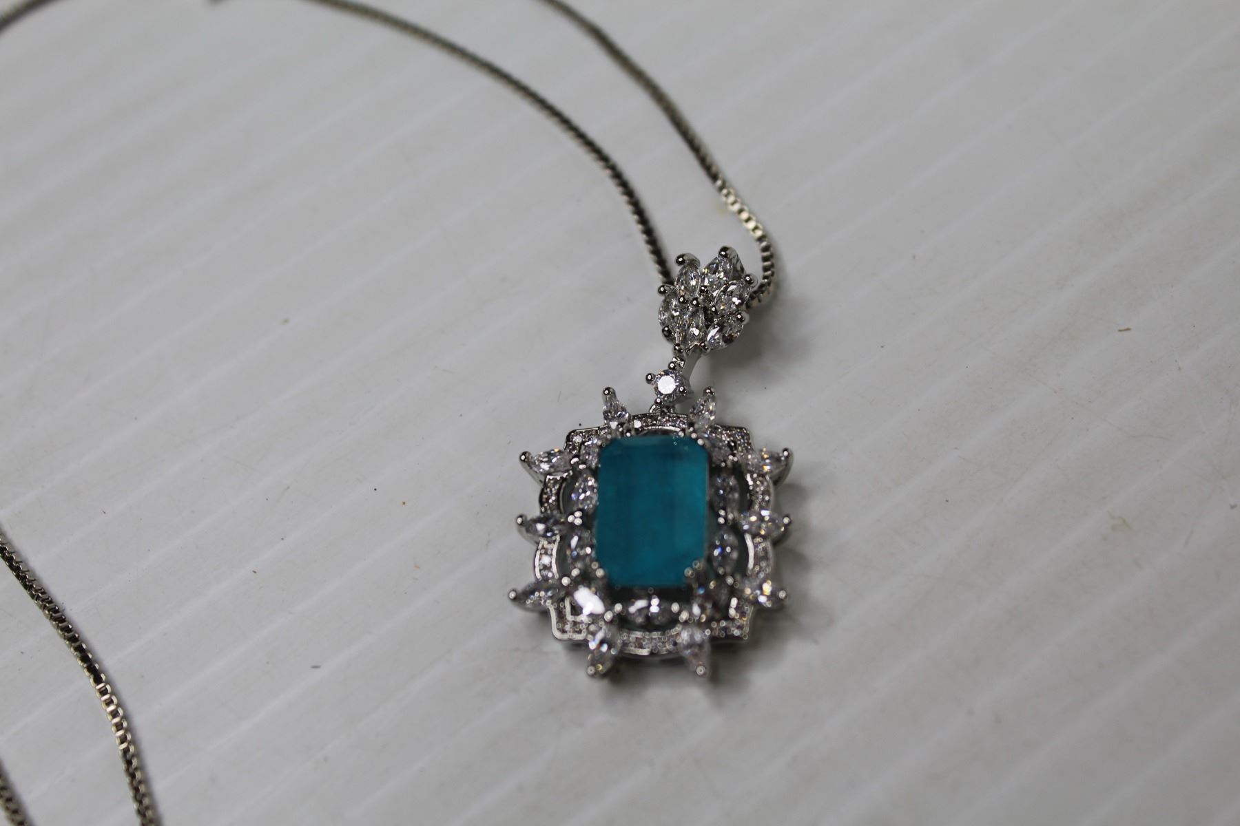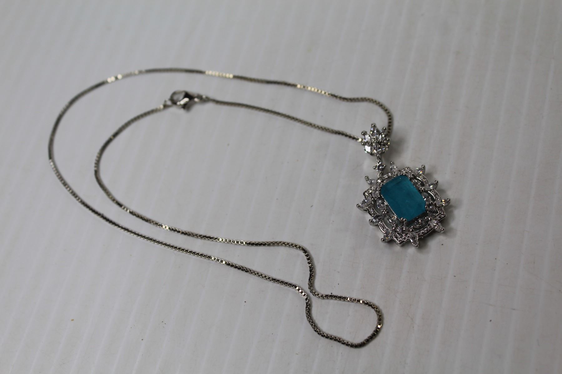 Silver Pendant With Blue Stone and Cubic Zirconia With Chain