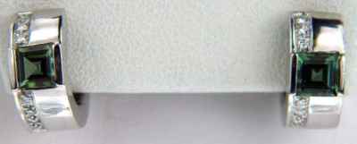 Silver Peridot & Diamond EarringsThe total earring's weight is 9.6 grams.The size of Peridot: 5x5mm Total weight diamond: 0.24 cts, G color, VS clarity.The size of earring: 15mm