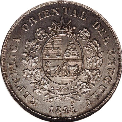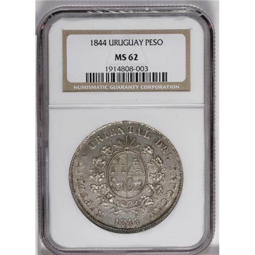 <B>Republic Silver Peso 1844,</B></I> KM-5, coin die-alignment, rare, MS62 NGC, handsome light gray toning, exceptionally sharp details and a problem-free planchet.<BR><BR><b>Shipping:</b> Coin/Currency (<a target="_blank" href="http://www.heritageauctions.com/common/shipping.php">view shipping information</a>)