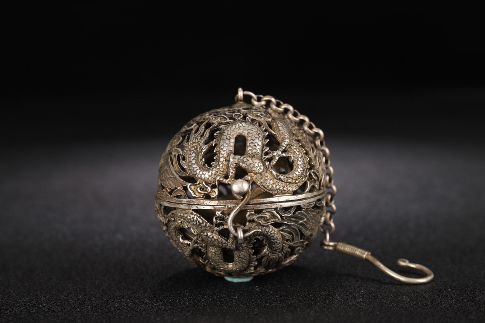 Silver Phoenix and Dragon Pattern Aromatherapy Ball