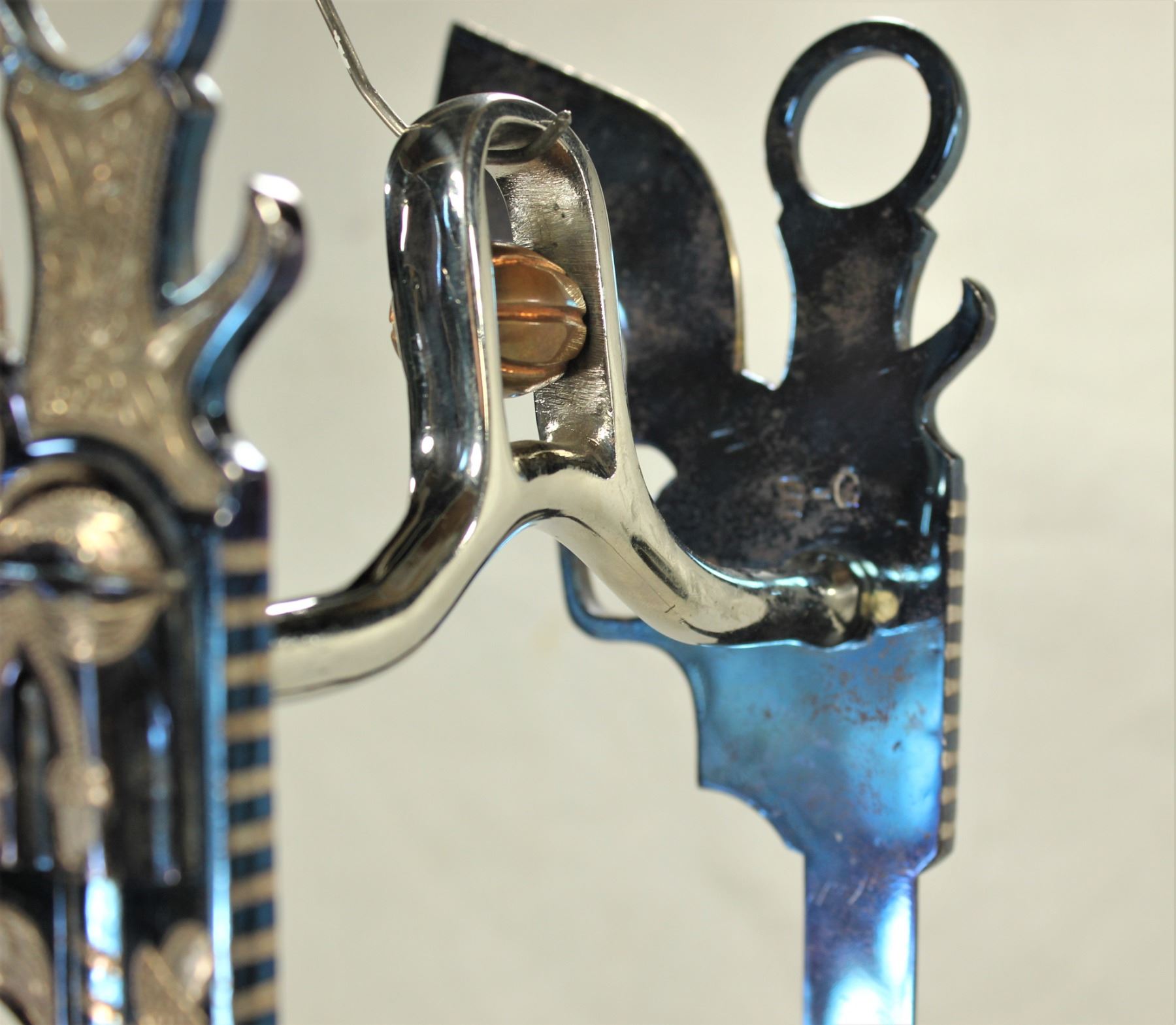 A minty very showy heavily silver inlaid pistol bit with halfbreed mouthpiece. Showing unused condition.