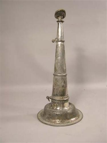 Silver plate fire trumpet. Highly engraved, no inscription, 19" bell is separating from horn. Needs repair.