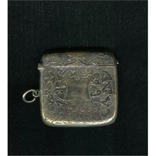 Measuring1.7/8" X 1.3/4"this vesta or match safe is Heavily chased with a blank cartouche for initials. Circa 1900.Silver Plate.