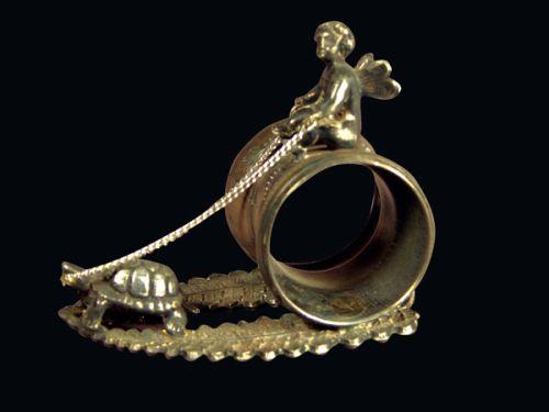 Silver Plate Napkin Ring, Cherub/Turtle