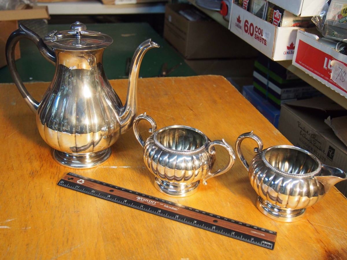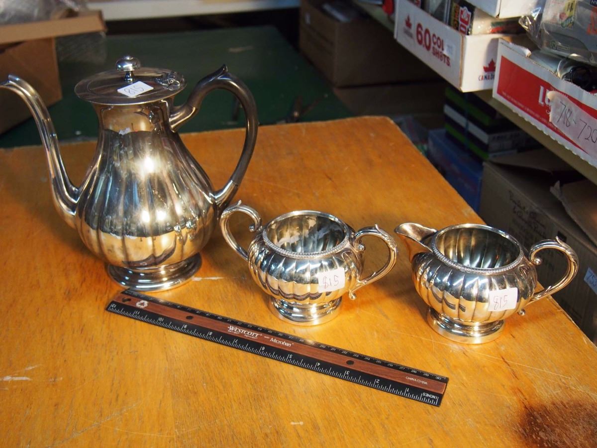 Silver Plate Tea Service, Teapot, Cream, Sugar
