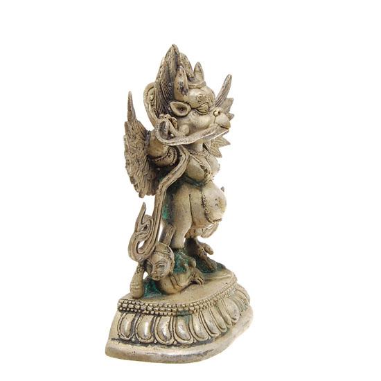 Excellent detailed silver plated Garuda depiction standing on mermaid; 5"