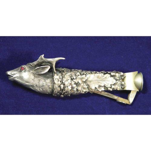 Silver Plated Cigar Tip Cutter with Elk Head and glass eyes. Excellent condition. 5 inches.
