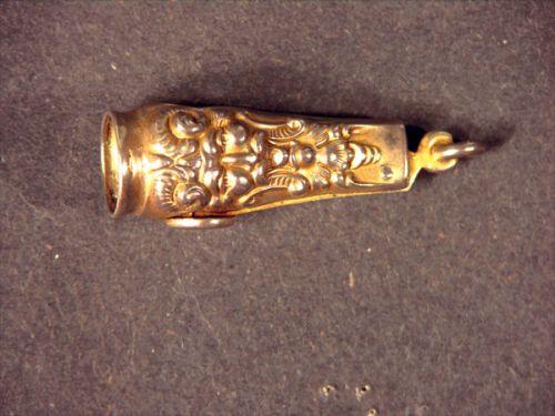 Silver Plated Cigar Tip Cutter depicts mans face with rams horns. 1 3/4 inches long.