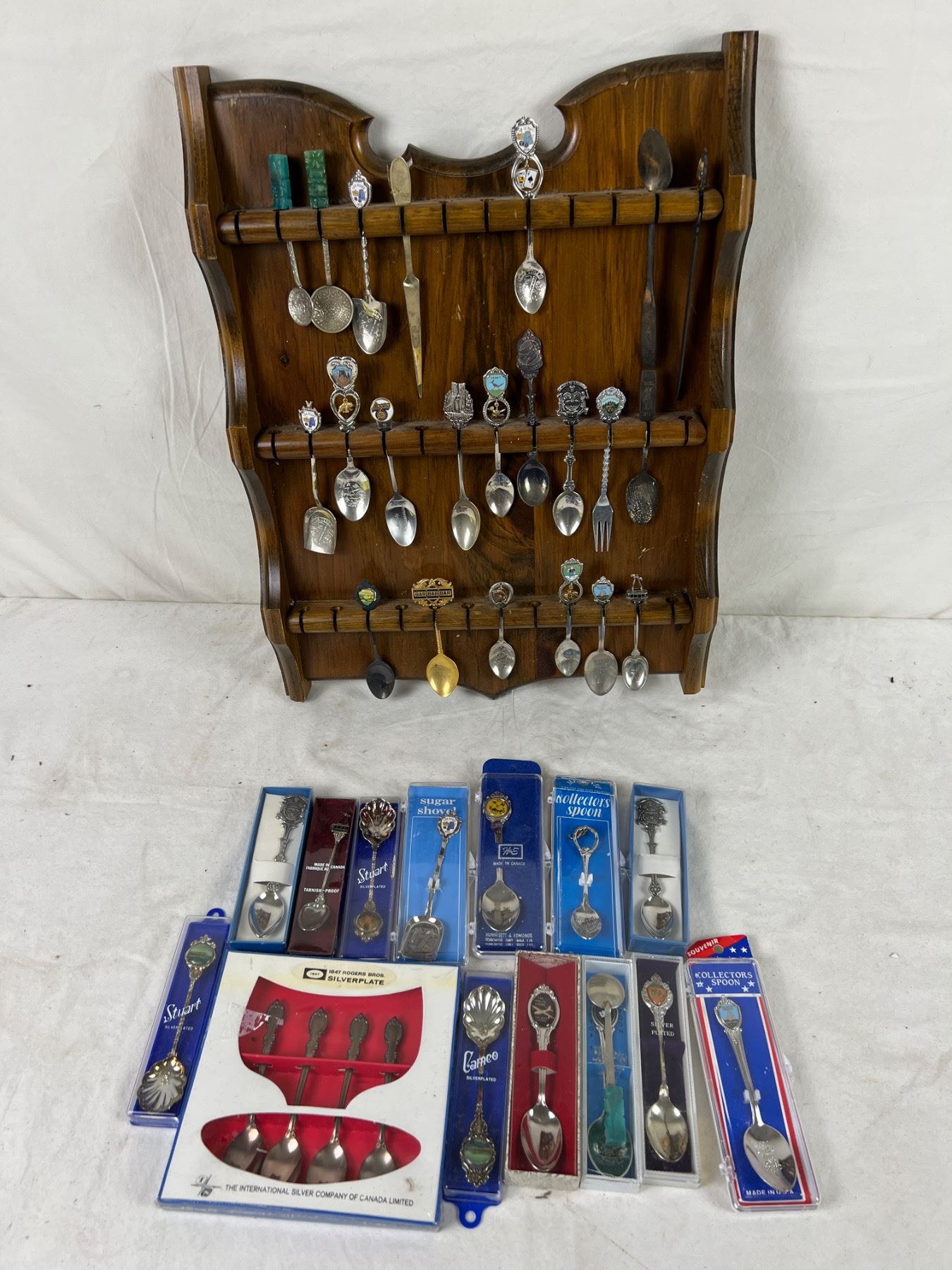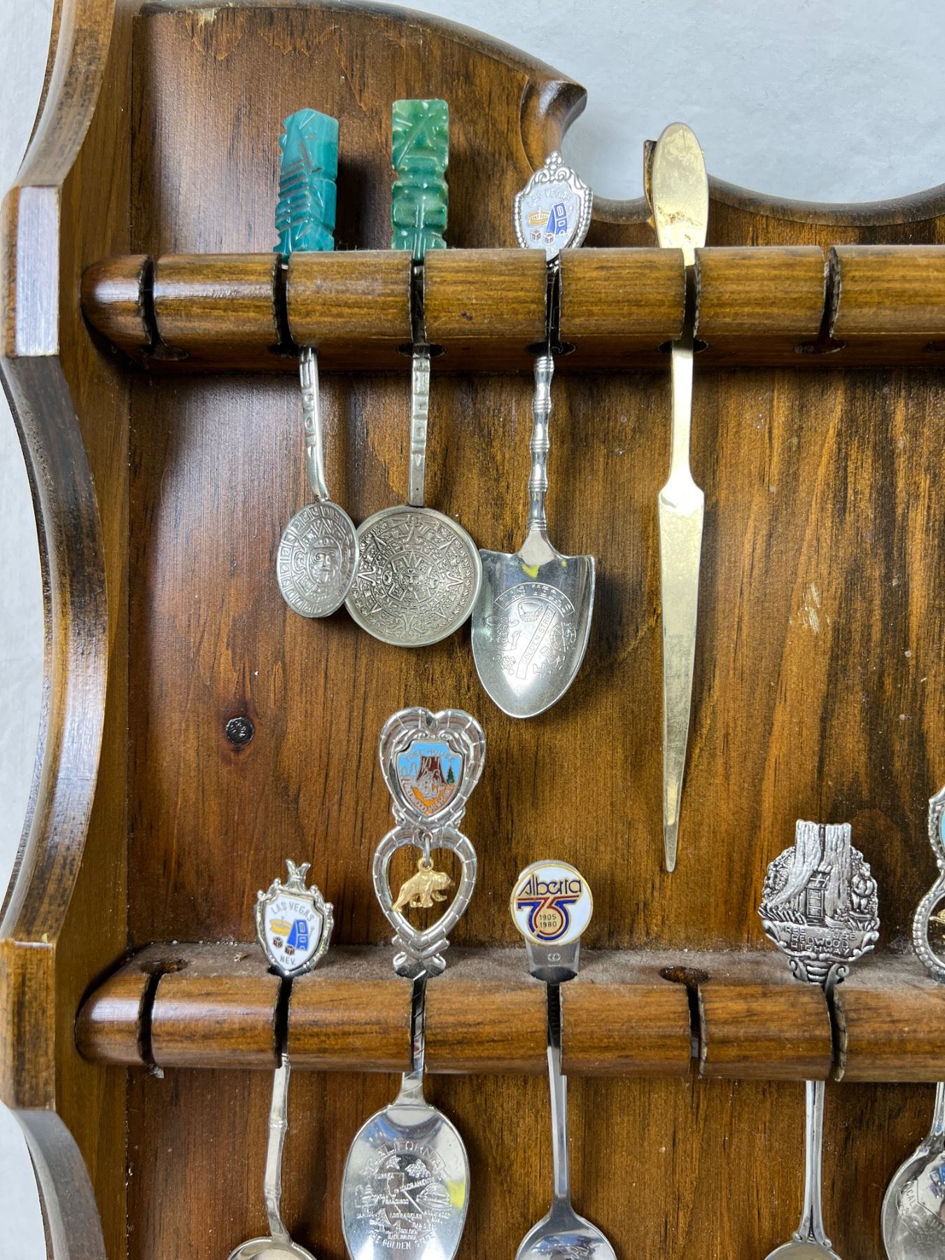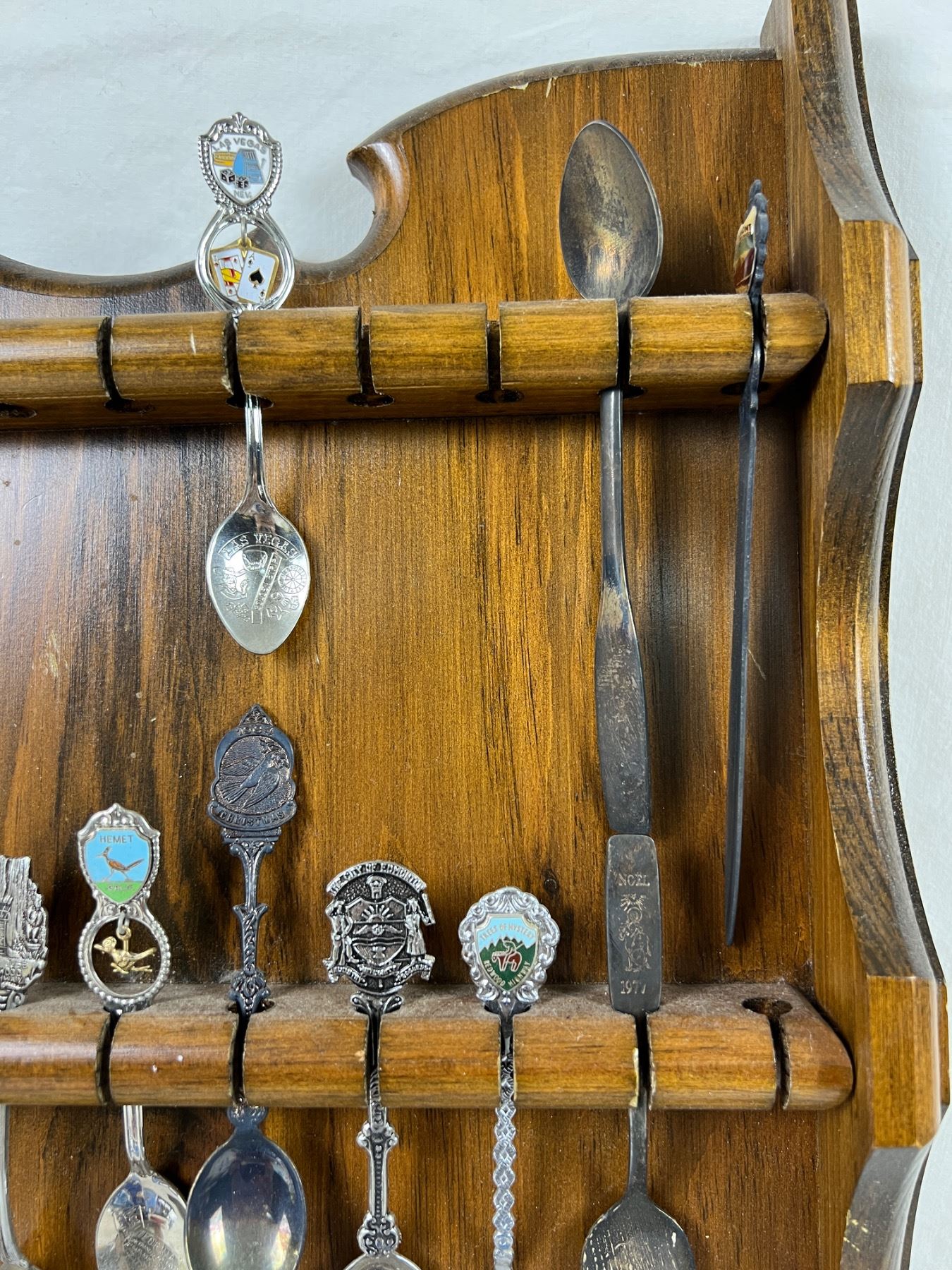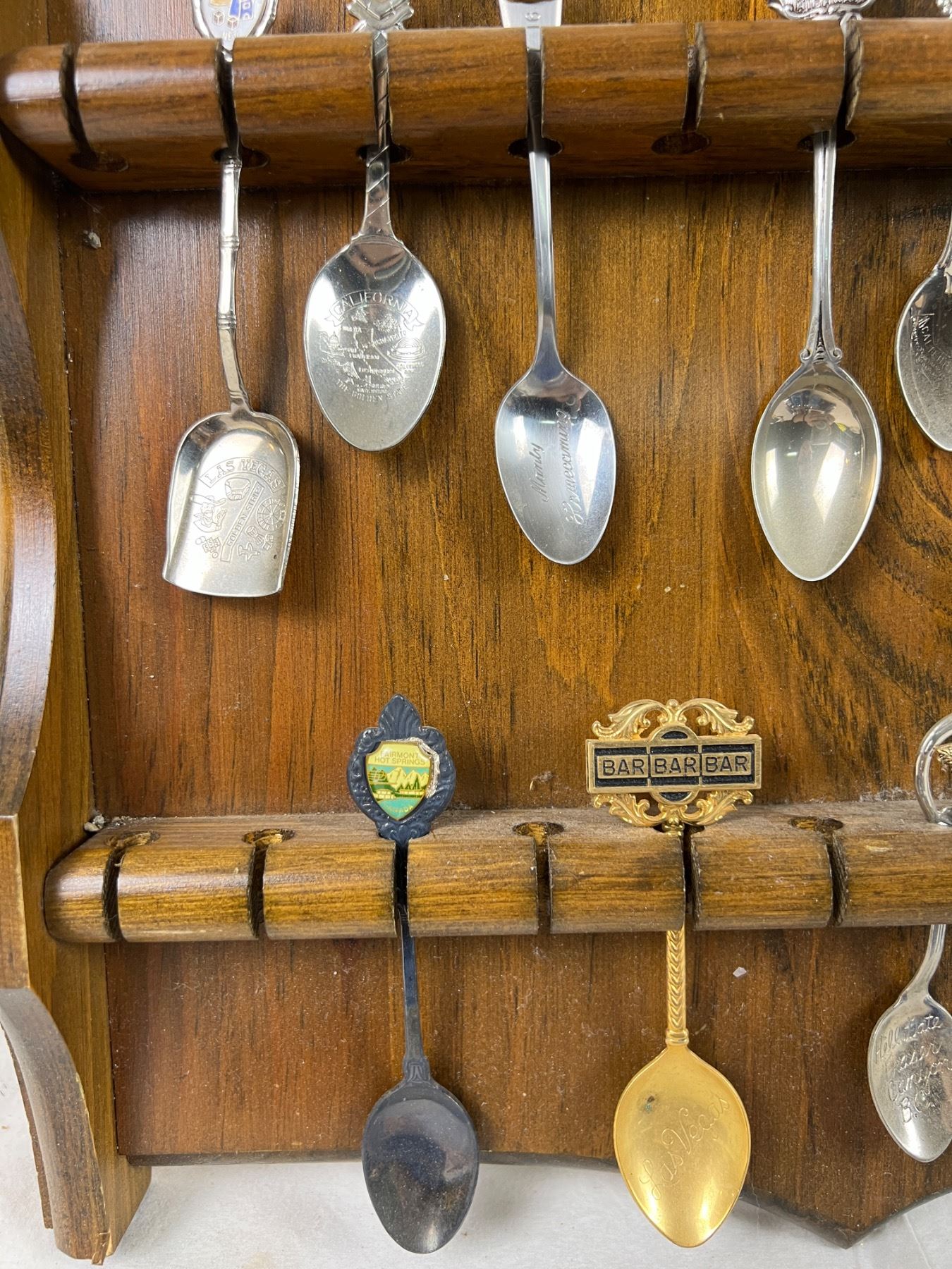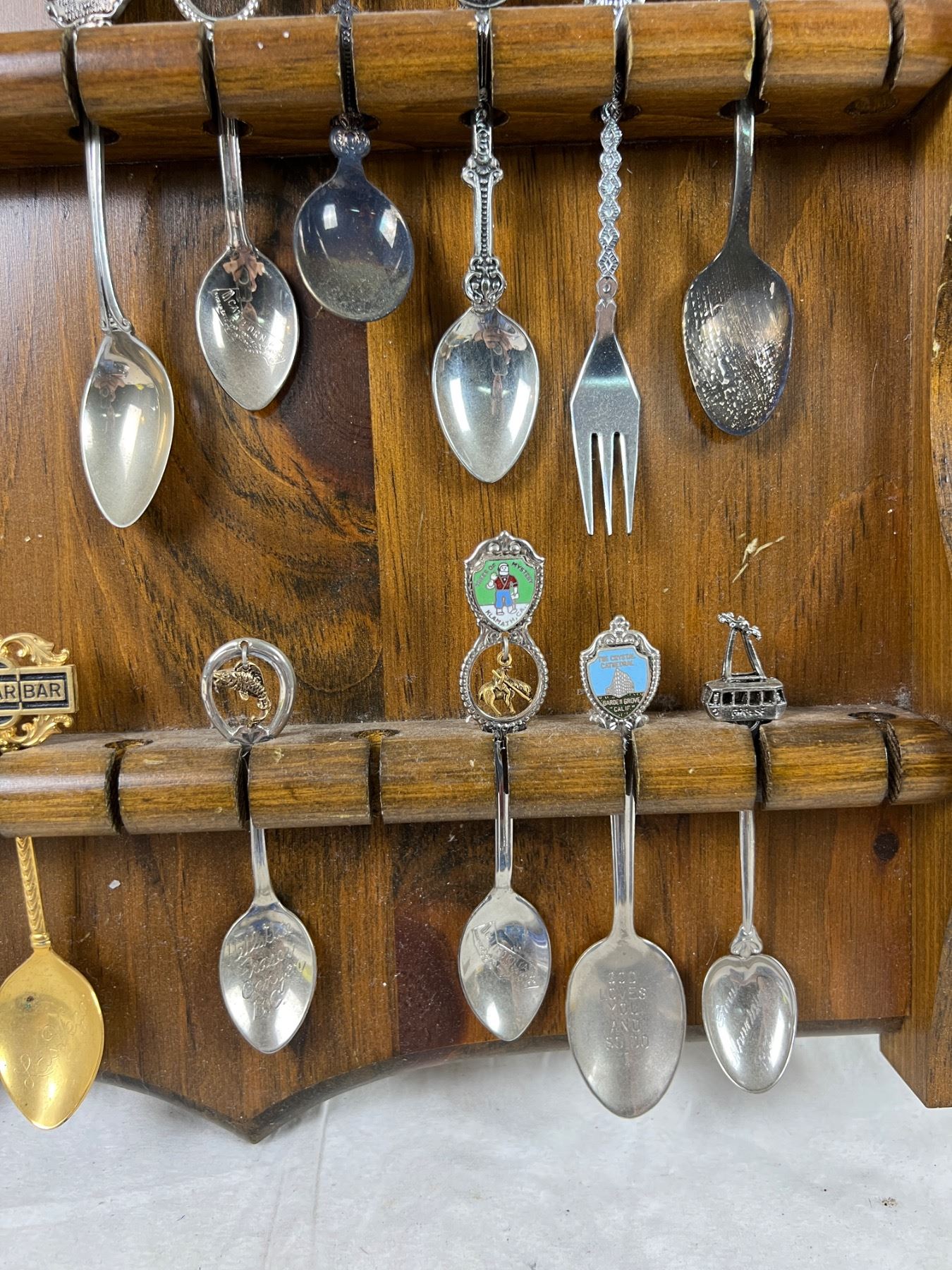 Most but not all spoons are silver plated. Hanger measures 18" tall and 13.5" wide.