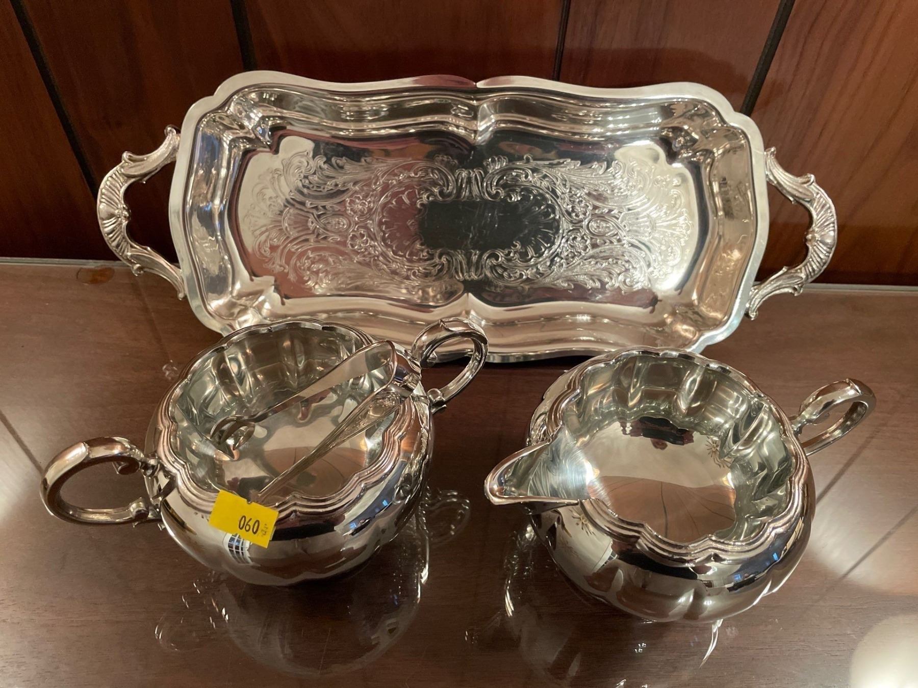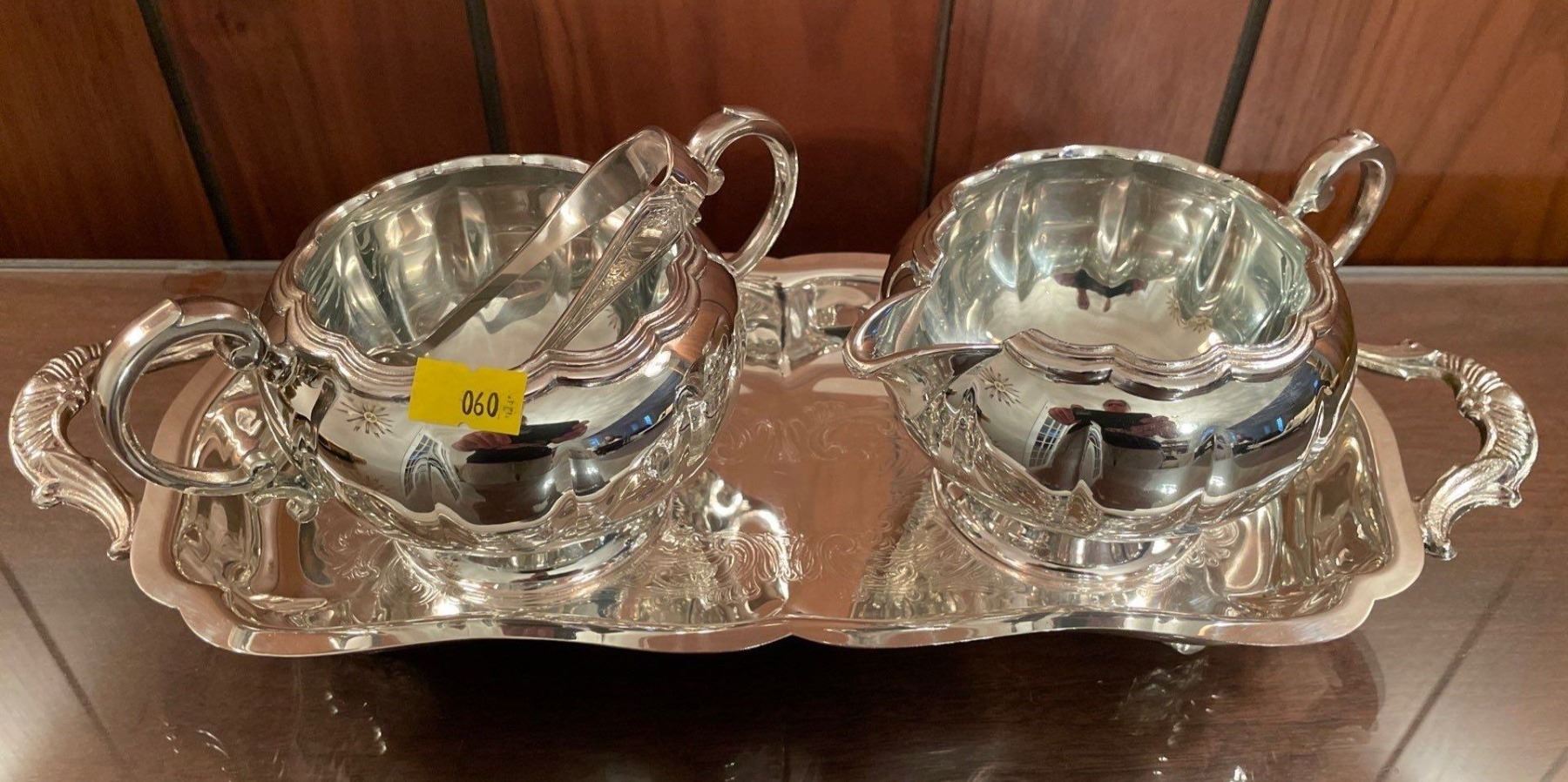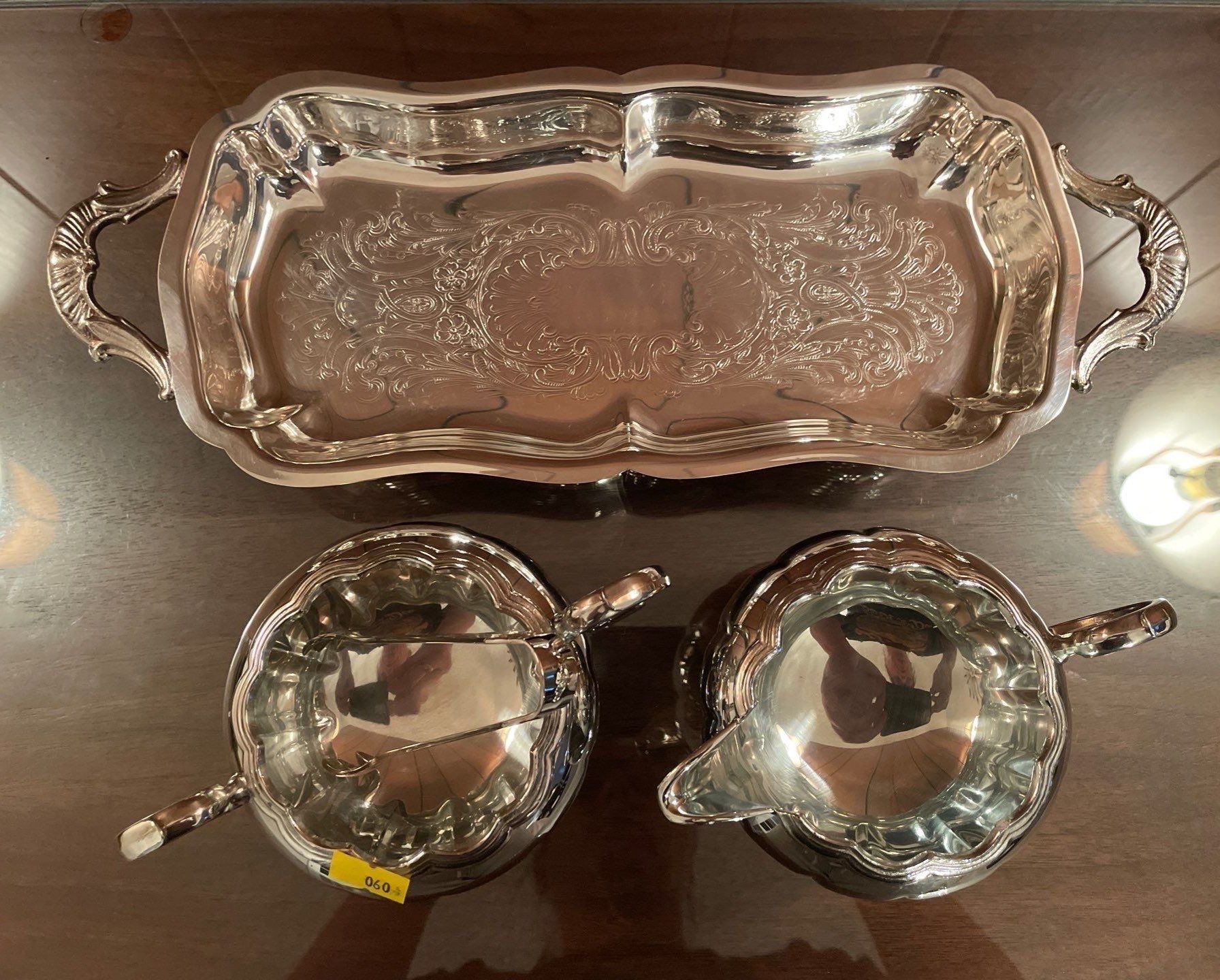 Silver Plated Creme & Sugar Serving Set 13Lx3H