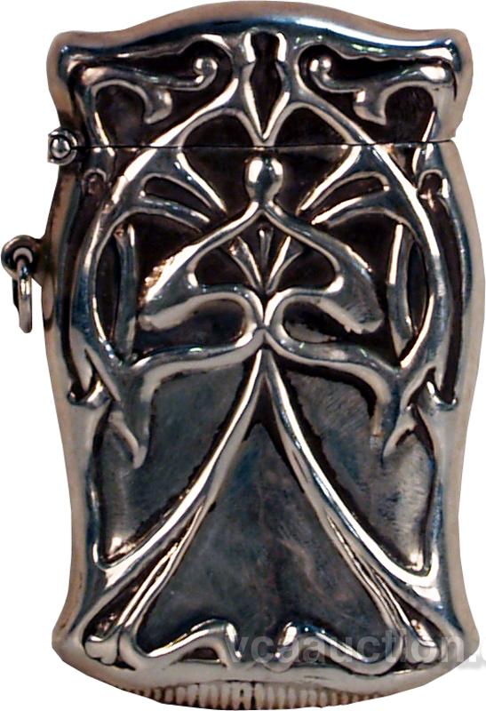 Silver Plated Embossed Art Nouveau Match Safe c1900