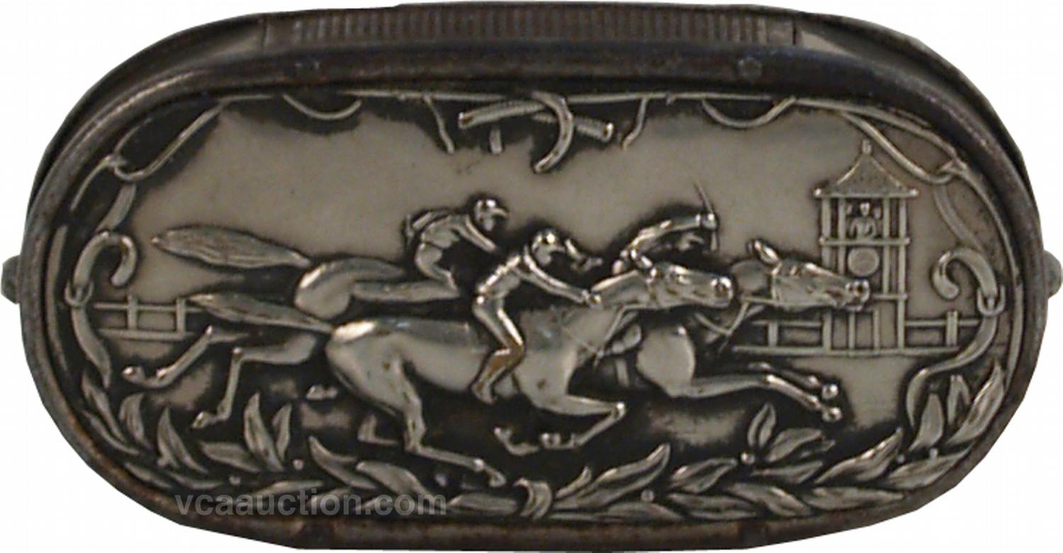 Silver Plated Embossed Horse Racing Match Safe c1890