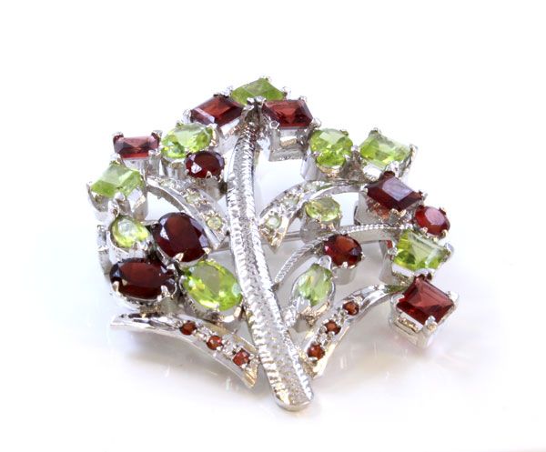 Silver Plated Garnet & Peridot Broach ctw