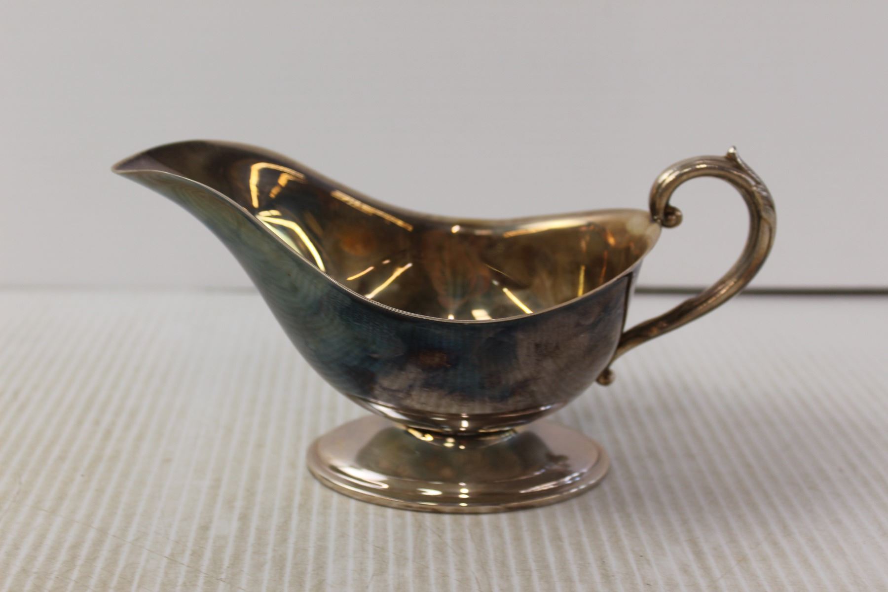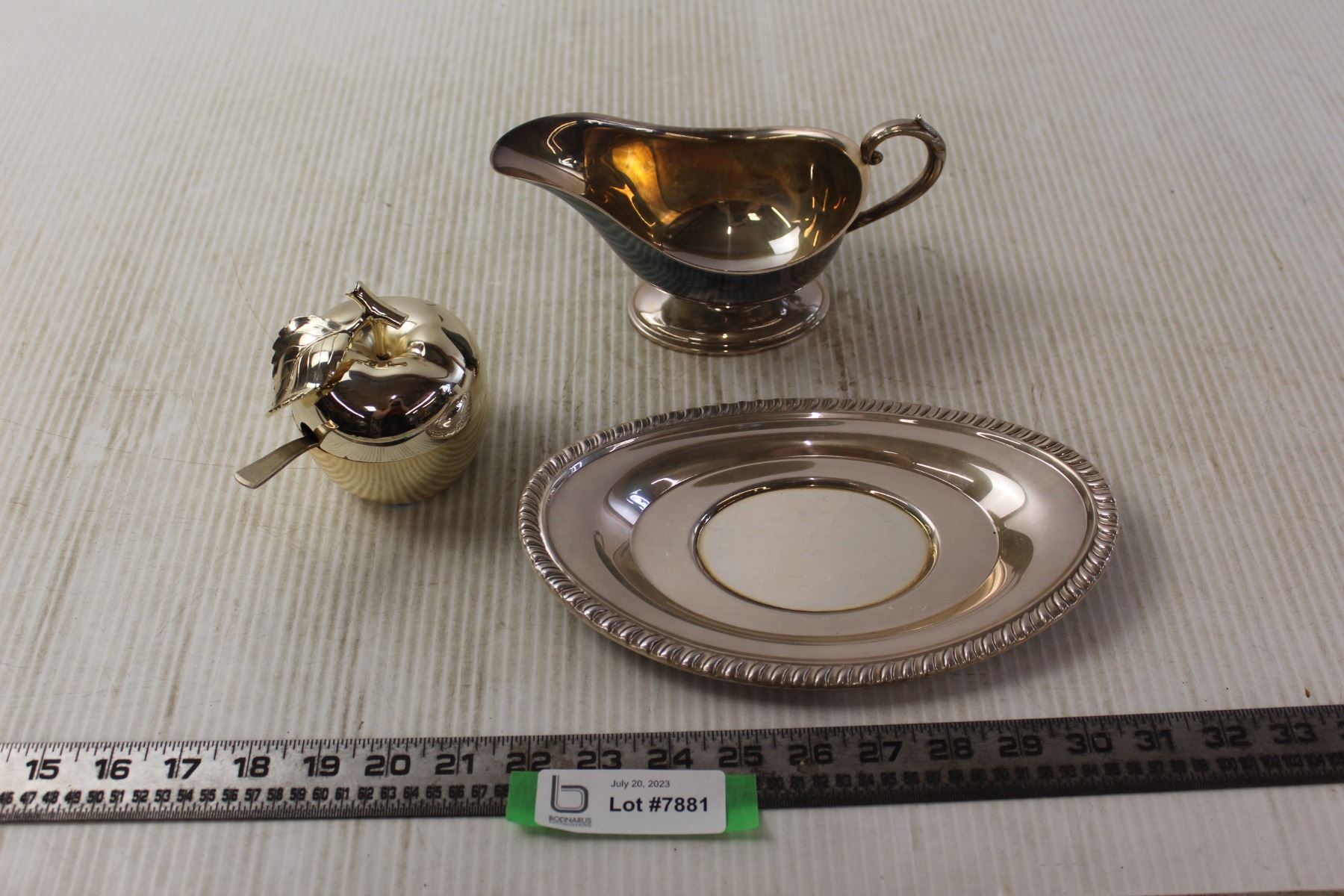 Silver-Plated Gravy Boat with Dish, Apple Sugar Container